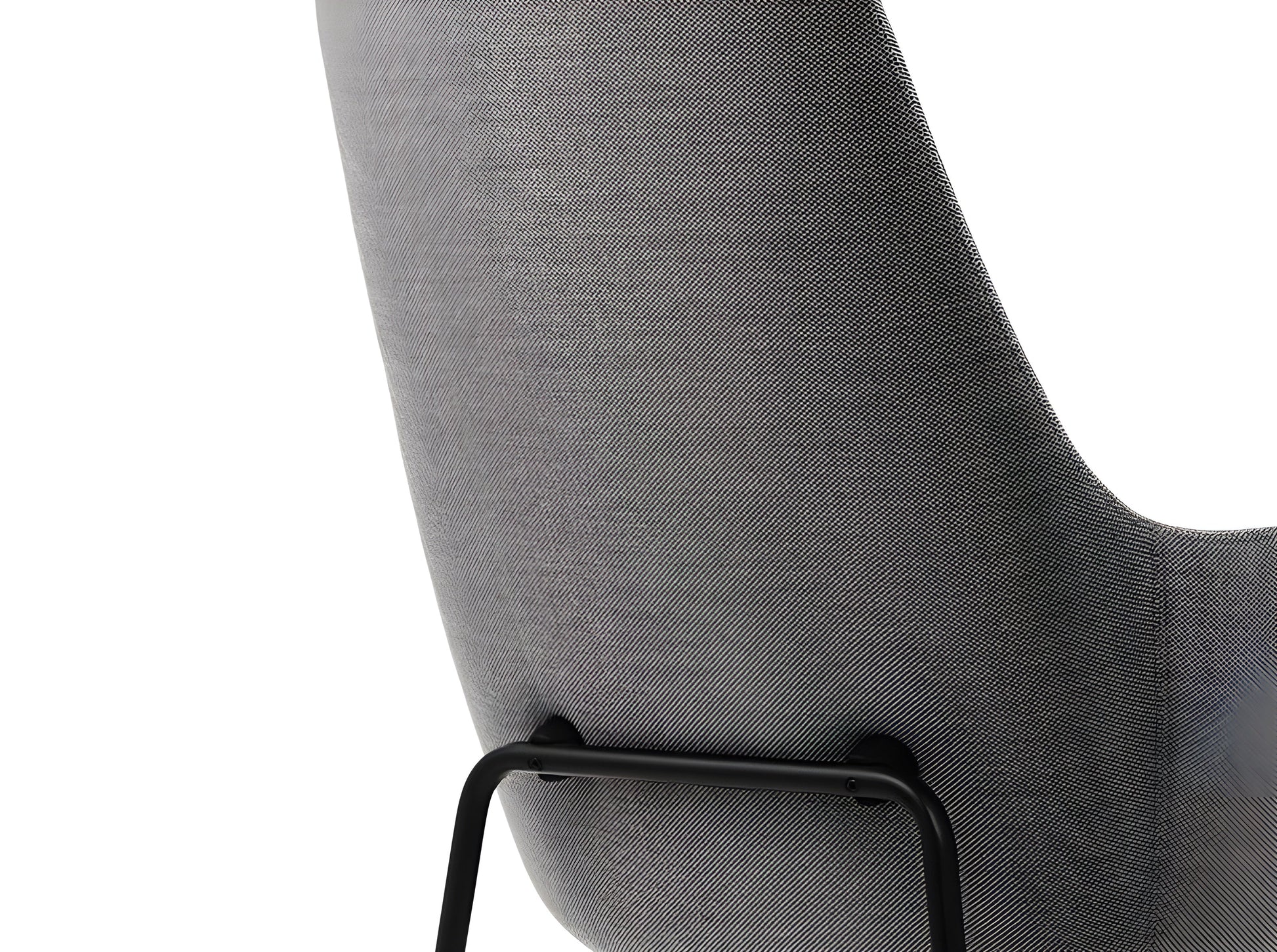 A: Upholstered seat with high backrest, supported by durable metal legs.