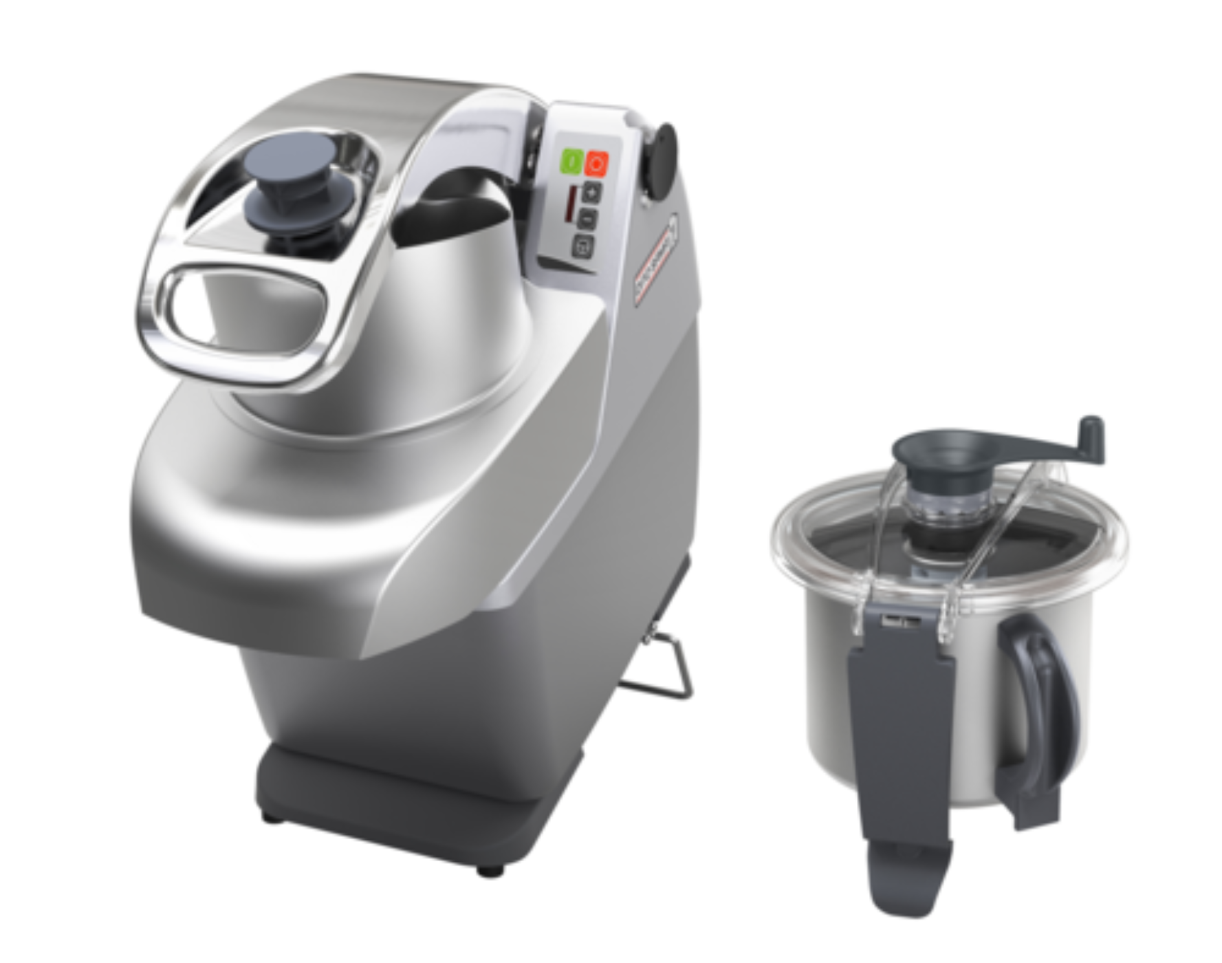 Dito Sama Combined Vegetable Slicer/Cutter Mixer, variable speed (300-3700 RPM). Supplied with 4.5 lt/4.7 qt stainless steel bowl, BPA-free lid, bowl scraper, microtoothed blade rotor and stainless steel hopper and lever, removable cutting chamber and ejector. 1000W/1-1/3 HP, NEMA 5-15P plug