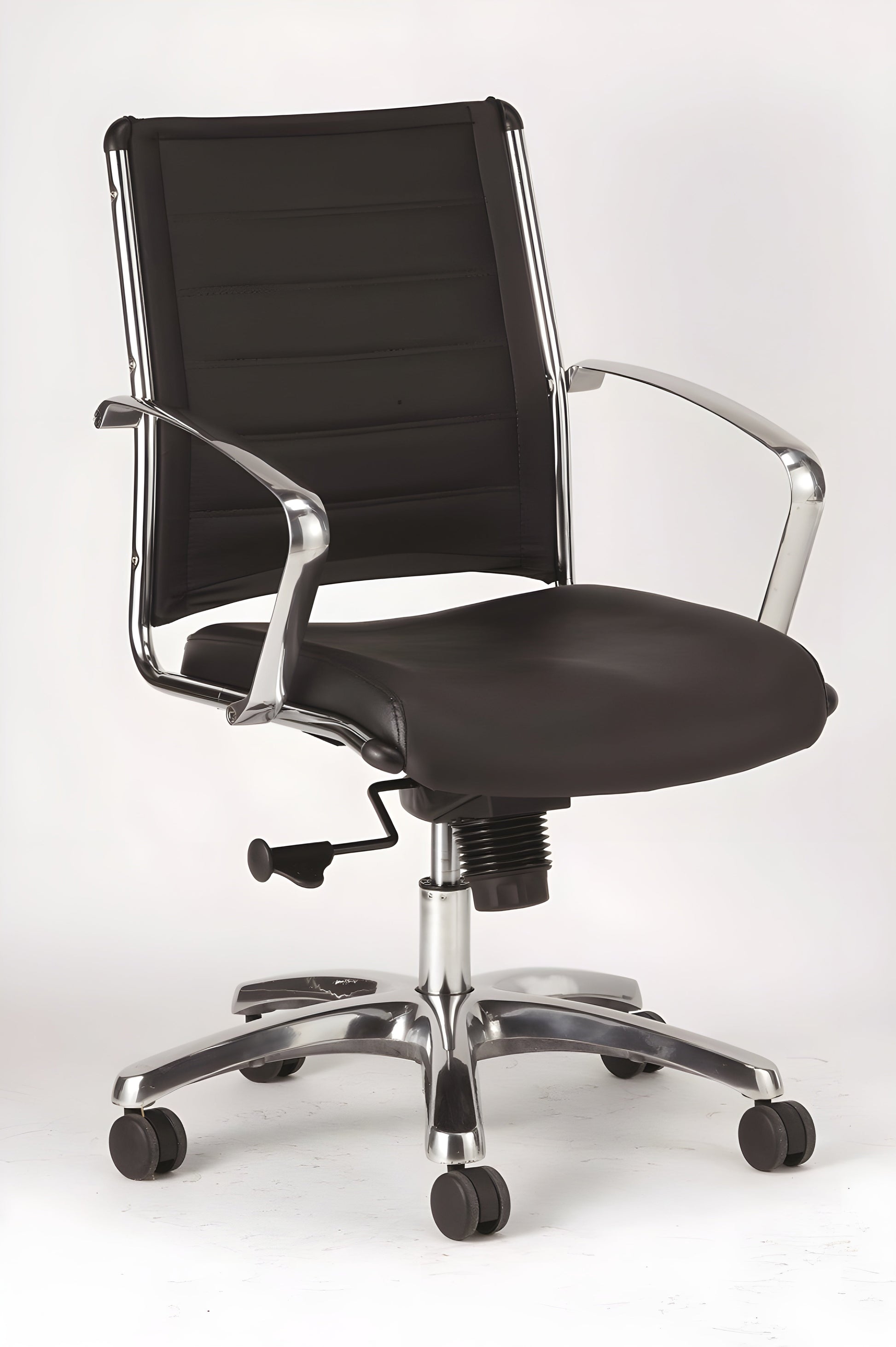 The Europa Hybrid Leather Mid-Back Chair by Eurotech is the epitome of style, comfort and durability. This chair is equipped with over-sized molded foam cushions and a steel substructure for enhanced functionality and strength. The chair also offers tilt tension control, knee tilt, tilt lock, seat height adjustment and a waterfall seat. The frame, arms and five-star base come standard in a polished aluminum finish.