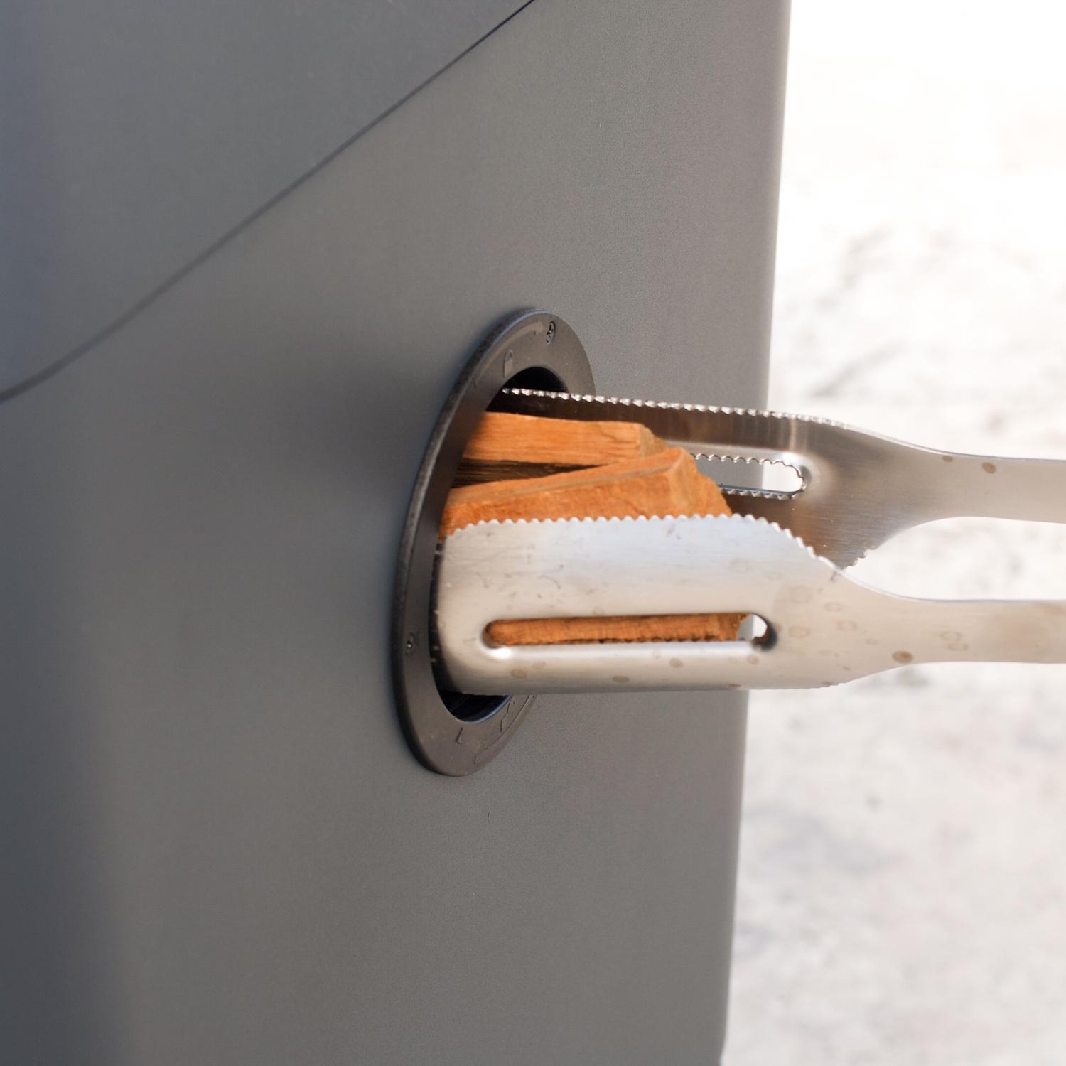Thoughtful Design Features – Side charcoal reloader, internal lighting, water refill zone, and retractable power cord make long cooks easier.