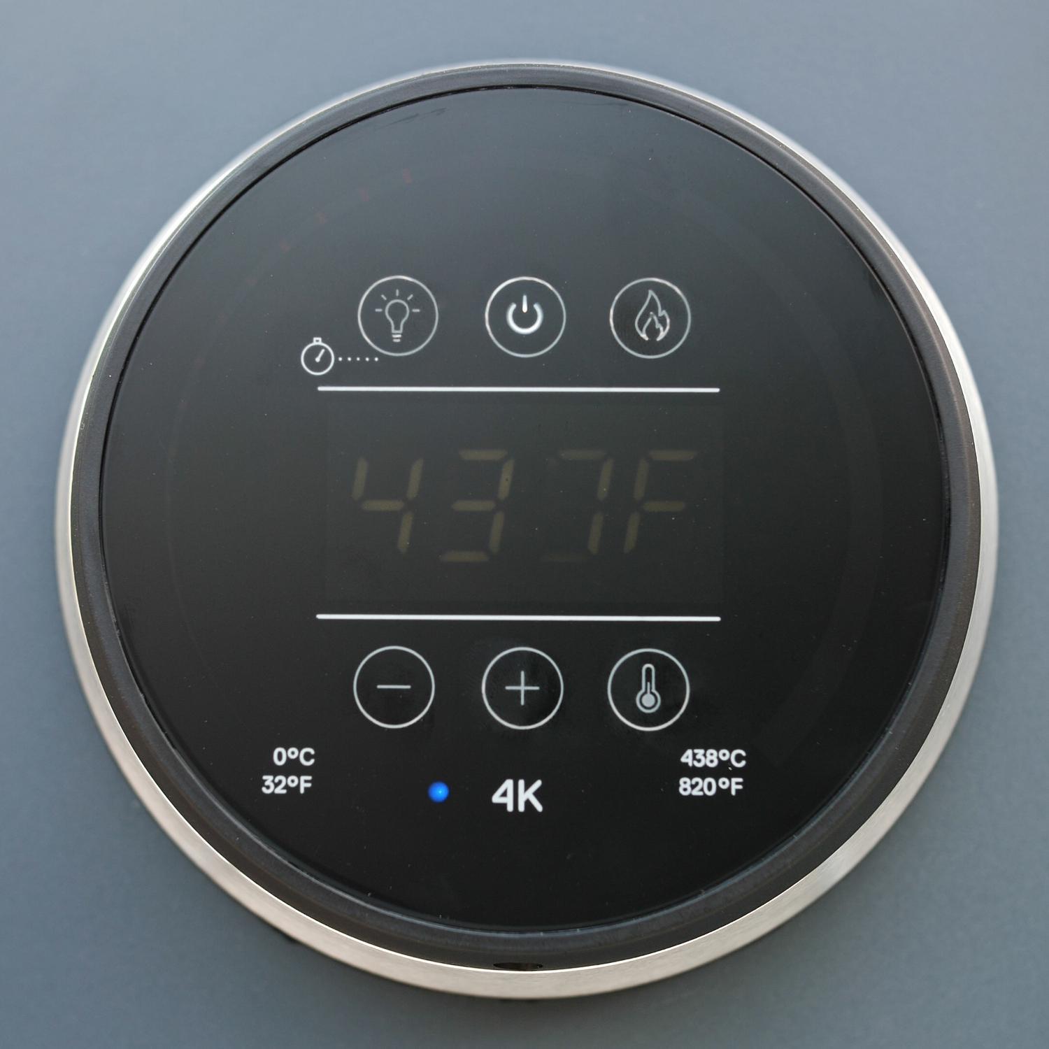 The 4K’s unparalleled airflow control system makes turning the heat up or slowing it down a unique experience. Both top and bottom vents are precisely numbered for a more balanced and responsive flow of air. Striking both inside and out, the 4K is a solid machine constructed from die cast aluminum and thick gauge metal. Our unique insulation design reduces heat transfer to the external body sides and front. With 2 discreet probes in the hood and 4 removable probes internally, the 4K takes outdoor cooking to another level. Displayed beautifully, all data can be accessed via Bluetooth to our free app which is also packed full of hints, tips, recipes and alerts. The 4K's outer body is complete with touch glass display; putting fire at your fingertips.