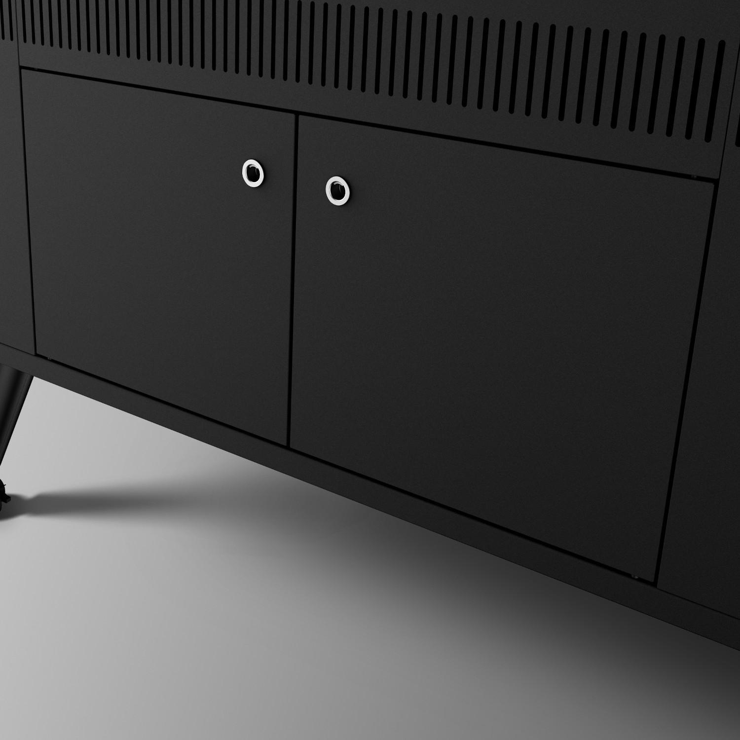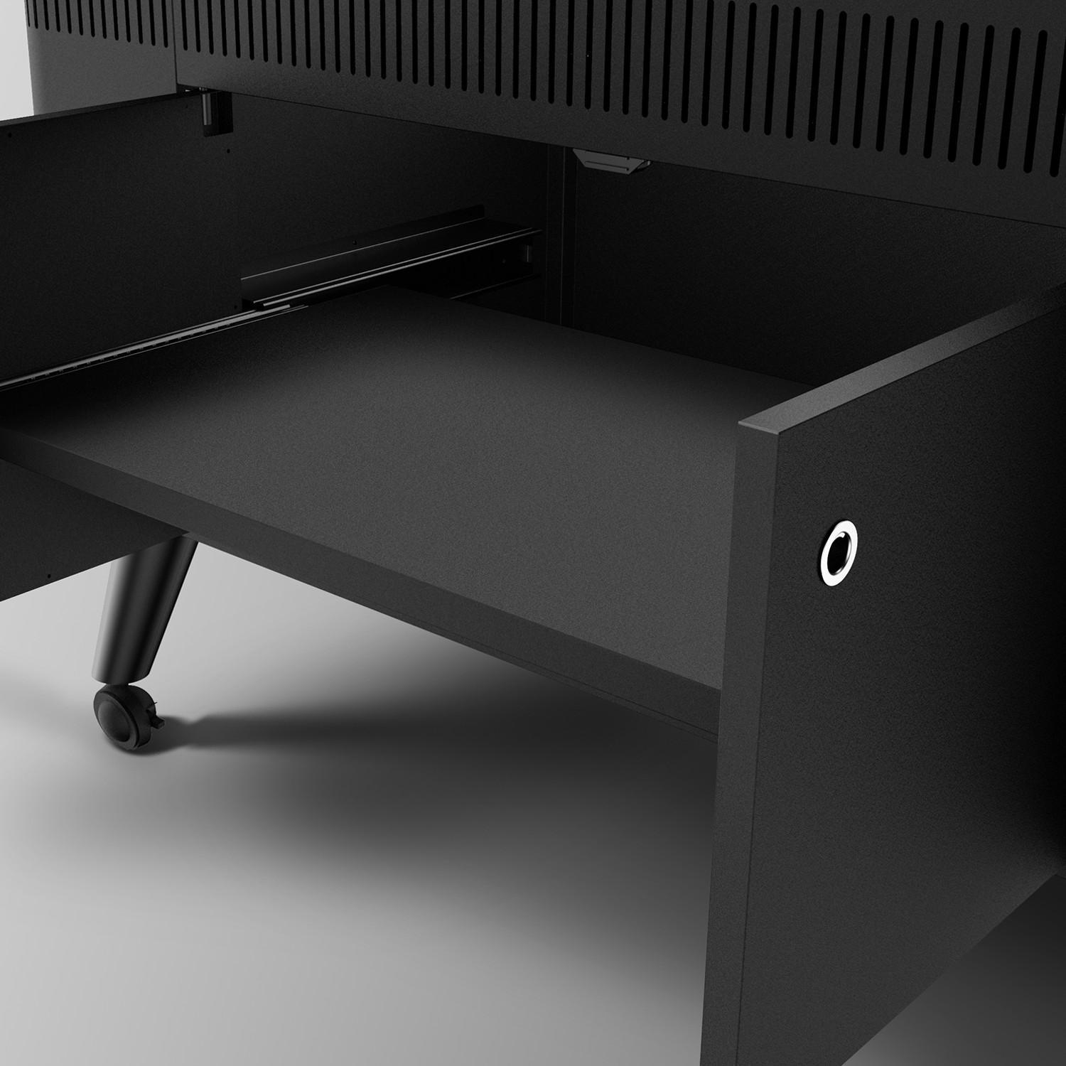 ClipLock Forks that have a jaw-like design that is perfect for keeping your food in place. The rotisserie is capable of supporting up to 88 lbs. The built-in heat protection shield provides enhanced protection on any surface. Chrome hinged grill grates allow easy access to the porcelain enamel firebox. This allows you to easily add, remove, or redistribute charcoal as you see fit. A 59-inch retractable power cord is included for no clutter storage. Locking caster wheels allow you to keep your grill stable and secure. A large area under the grill can be accessed via the two double-lined doors. This provides you with extra storage options. The modern appearance of the Everdure Grills is inspired by minimalist Danish designs. The HUB II grill stands on four legs, two with rolling casters, giving you enhanced mobility when pursuing your ideal grilling experience.
