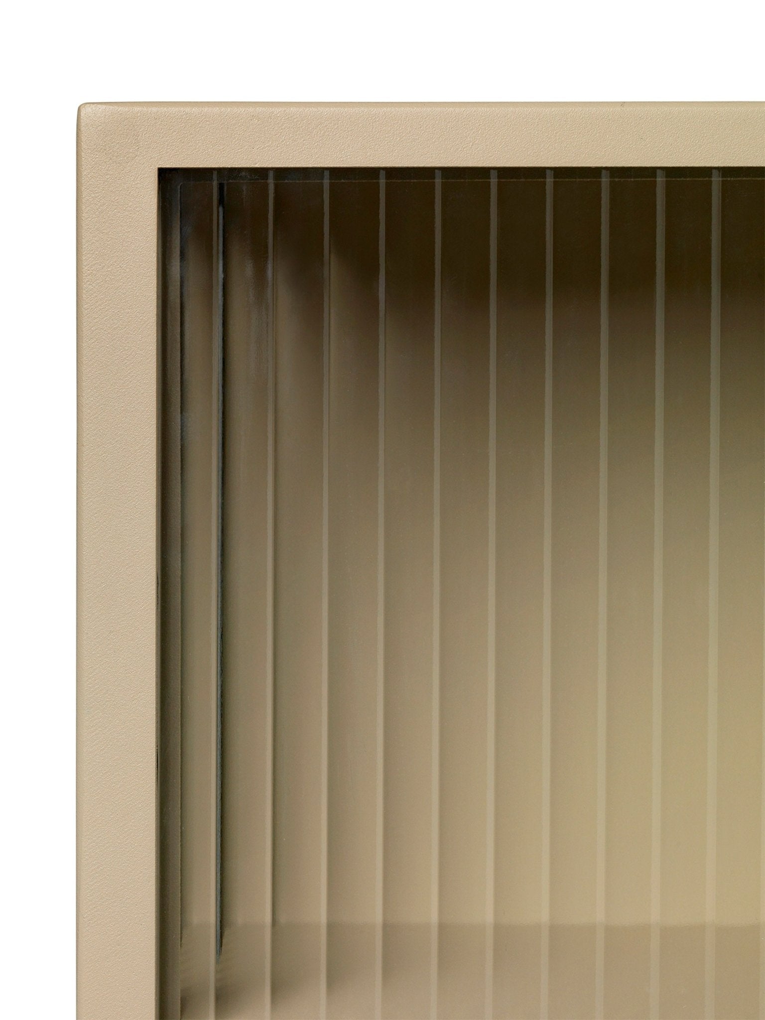 The Ferm Living Haze Wall Cabinet perfectly blends Scandinavian design with practical storage solutions. Featuring a powder-coated steel frame and elegant reeded glass panels, it fits seamlessly alongside bathroom light fixtures or wall sconces. Moreover, it offers two metal shelves and a magnetic soft-close door, combining quiet functionality with style. Consequently, this cabinet enhances your modern furniture collection while keeping essentials neatly organized.