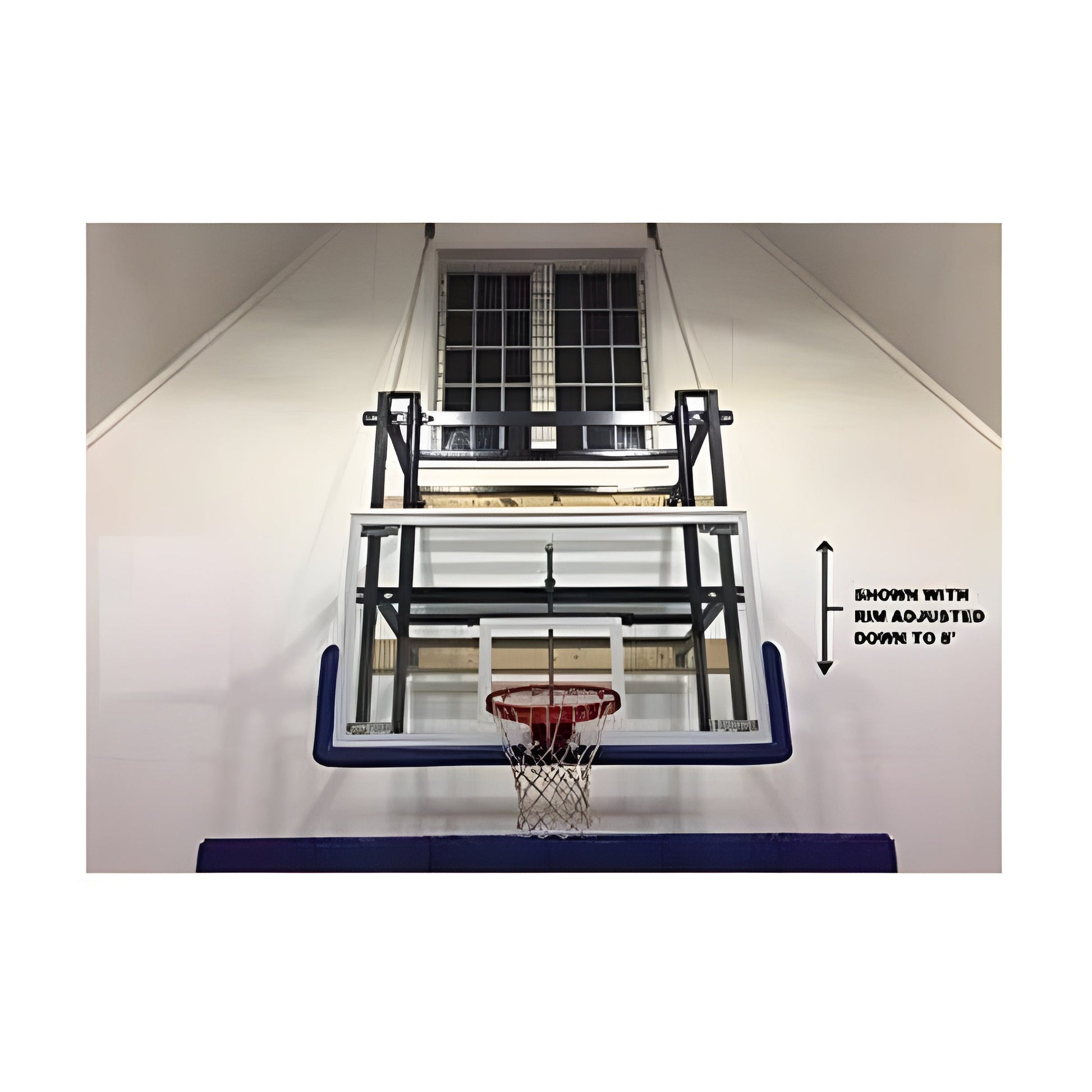 Works with any basketball backboard that has 36"x62" spaced mounting brackets