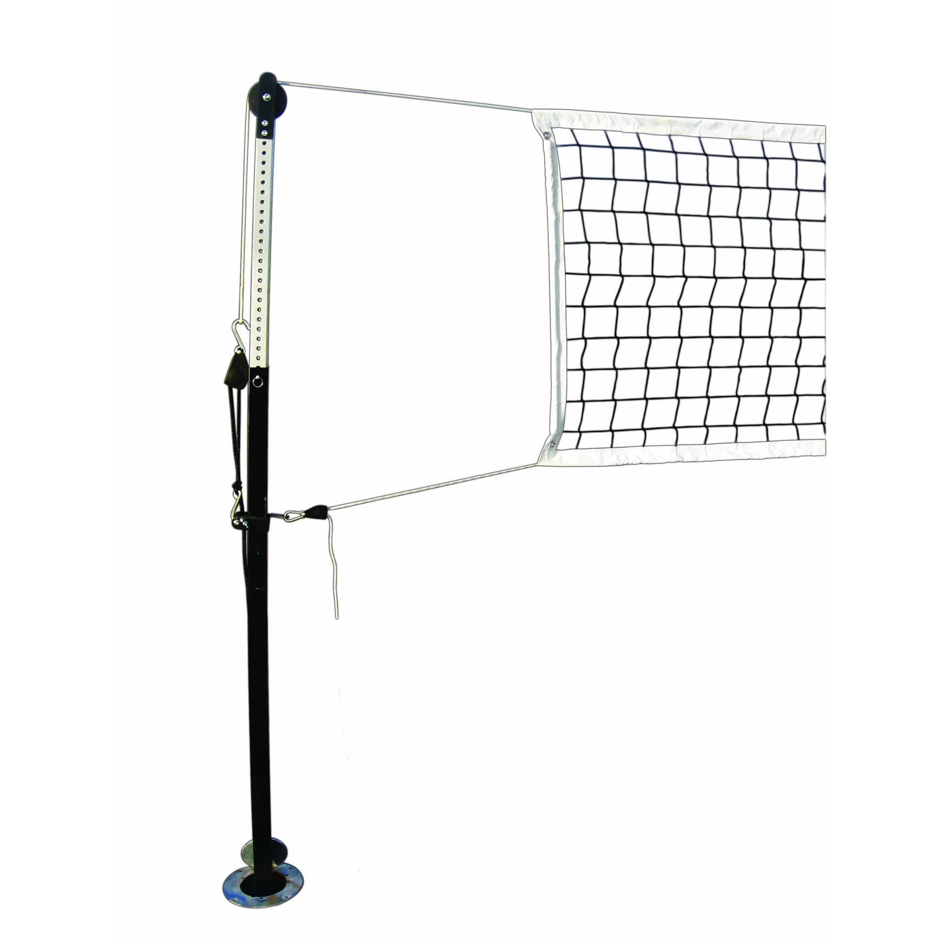 The 2" square uprights are powder-coated black for competition styling. The galvanized upper sections telescope up and down to allow play at any height, men's, women's, or junior. The QuickSet comes with the same high-quality net and net tensioning device used on our higher-end Blast systems.