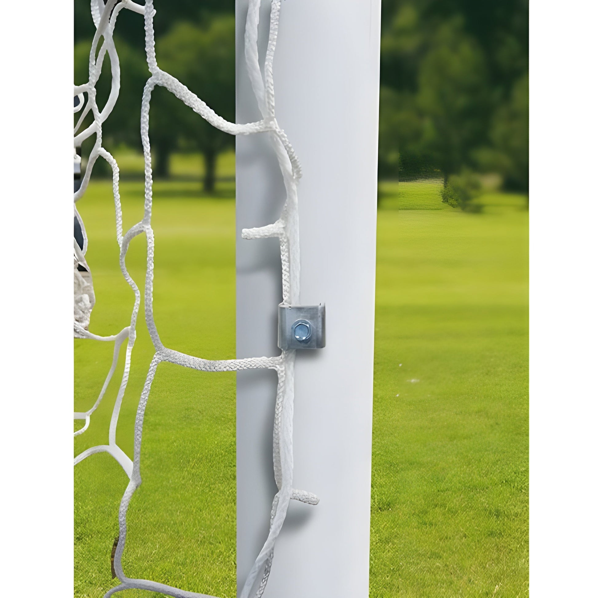All World Class 40 soccer goals are manufactured to exacting standards for true, seamless fit throughout. The 4" round aluminum uprights and crossbar are powder coated white for an aesthetic appeal. First Team's World Class net fastening system attaches net securely in place. Once in place, net clips will not come loose or get lost. No more velcro straps, welded hooks, screws, or nylon ties. Unlike other manufacturer's clips, World Class net fasteners will not become loose or cause misalignment of net.