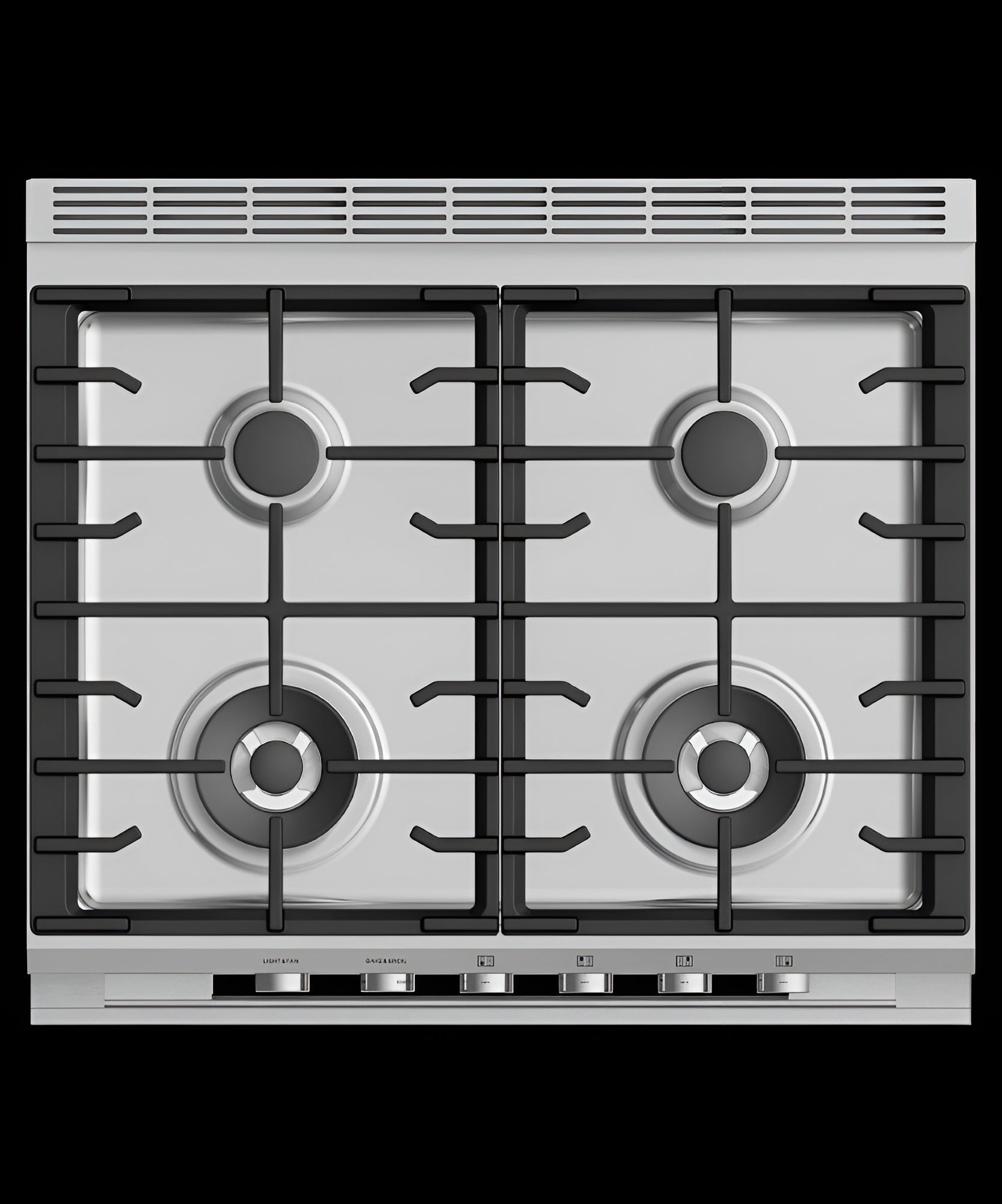 A: The cooktop includes five powerful burners, including a dual-ring burner for precise simmering and high-heat cooking.