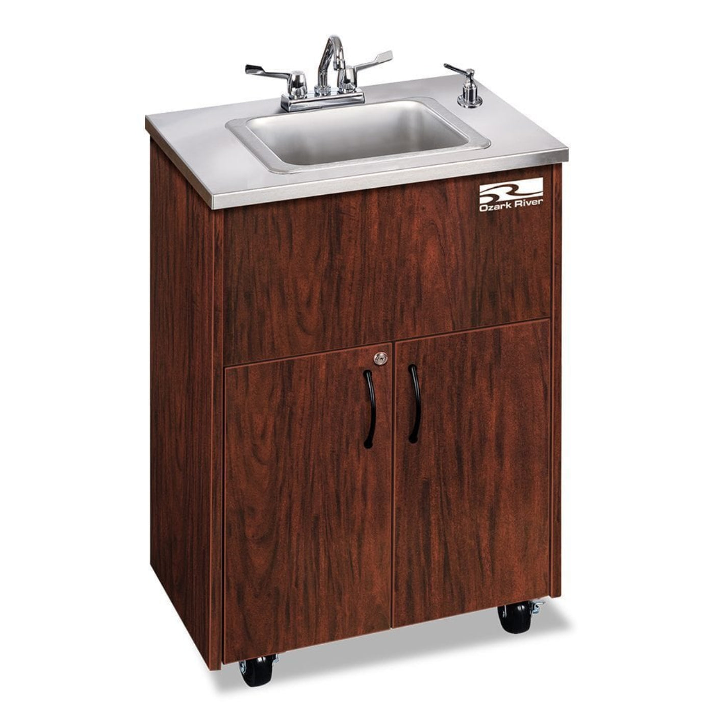 A: The Forbes 5746 is designed for easy maintenance. The stainless steel countertop and durable laminate cabinet are easy to clean, while the components like the soap dispenser and water tanks are simple to refill and maintain.