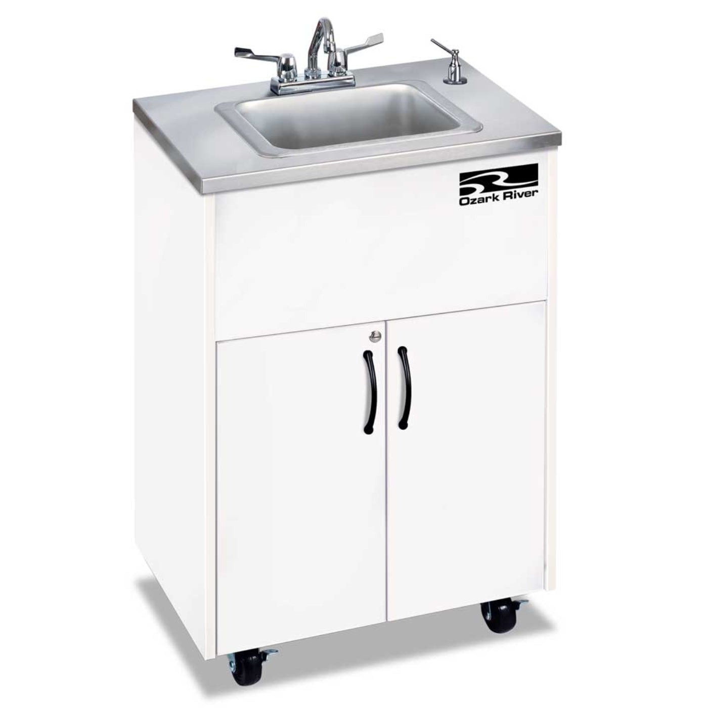 Self-Contained System: Includes a 6" deep sink, clean and wastewater tanks, water heater, and pump, providing hot water on demand without the need for plumbing.