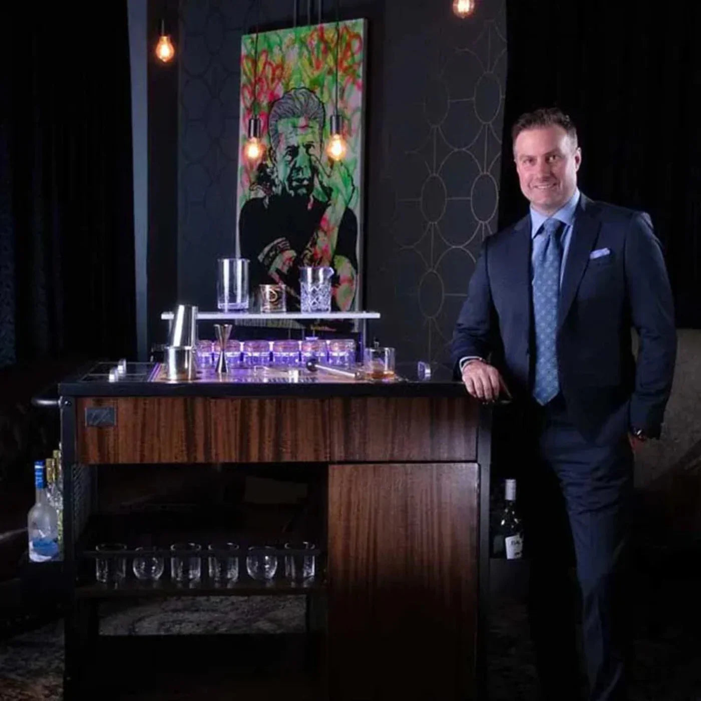 Premium Work Surface: Features a durable butcher block top, offering a sturdy and easy-to-clean area for cocktail preparation.