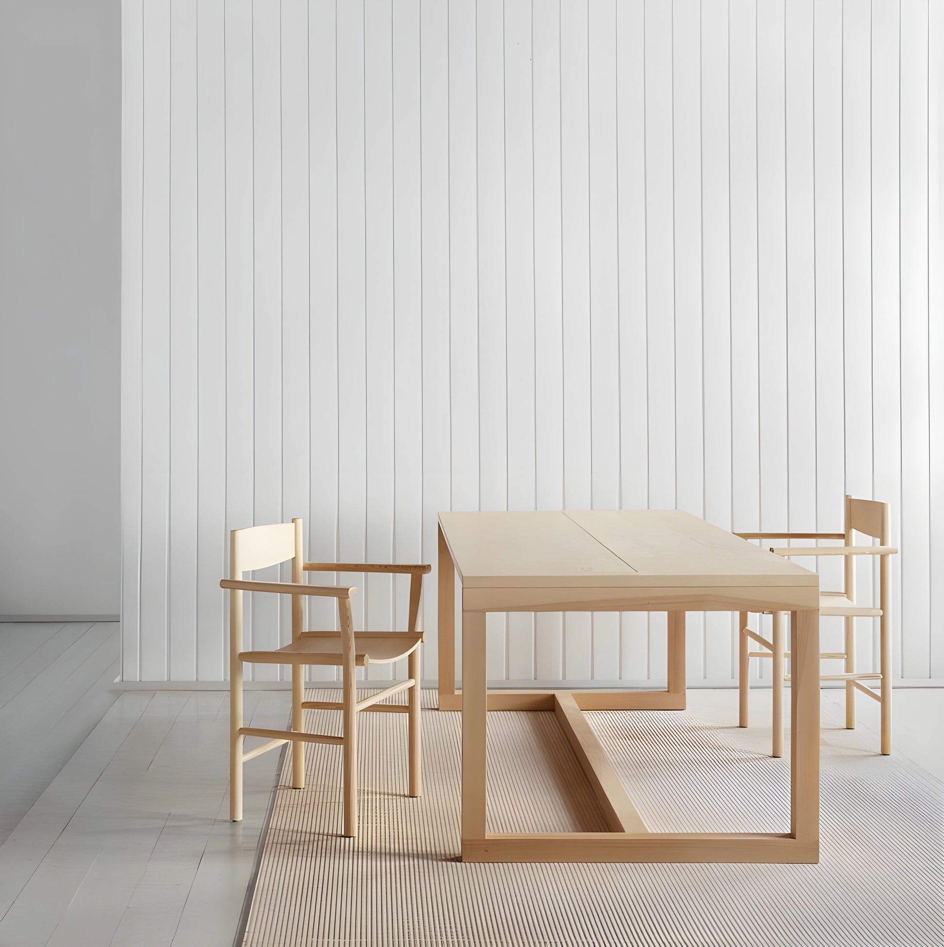 The Nikari Frame Table was originally created by architect John Pawson for his family farmhouse in the Cotswolds. Designed with clarity and purpose, this basic table highlights the balance between architectural form and natural materials. Made from solid oak or ash, the Frame Table brings warmth and structure to any space. Whether used in a dining room or beside a media console, it instantly elevates modern furniture settings.