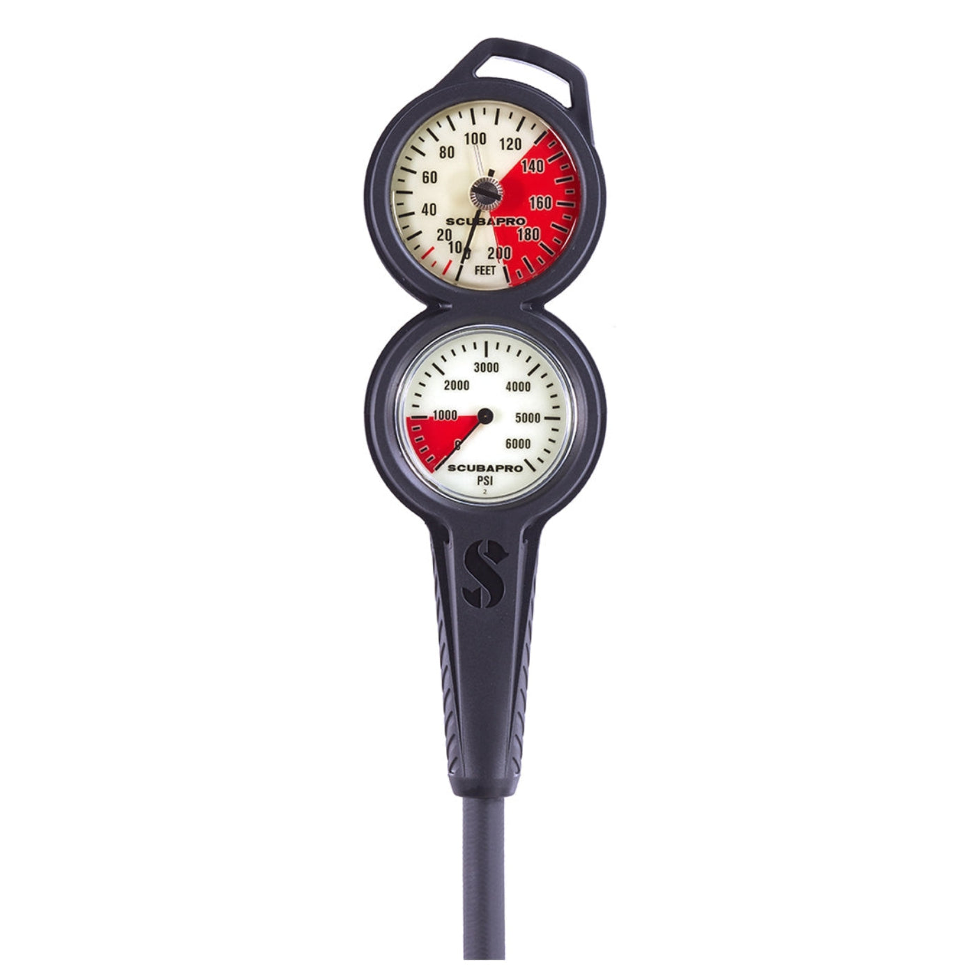 Dual Gauge Setup: Includes a depth gauge and pressure gauge, making it ideal for divers who need both readings in one device.