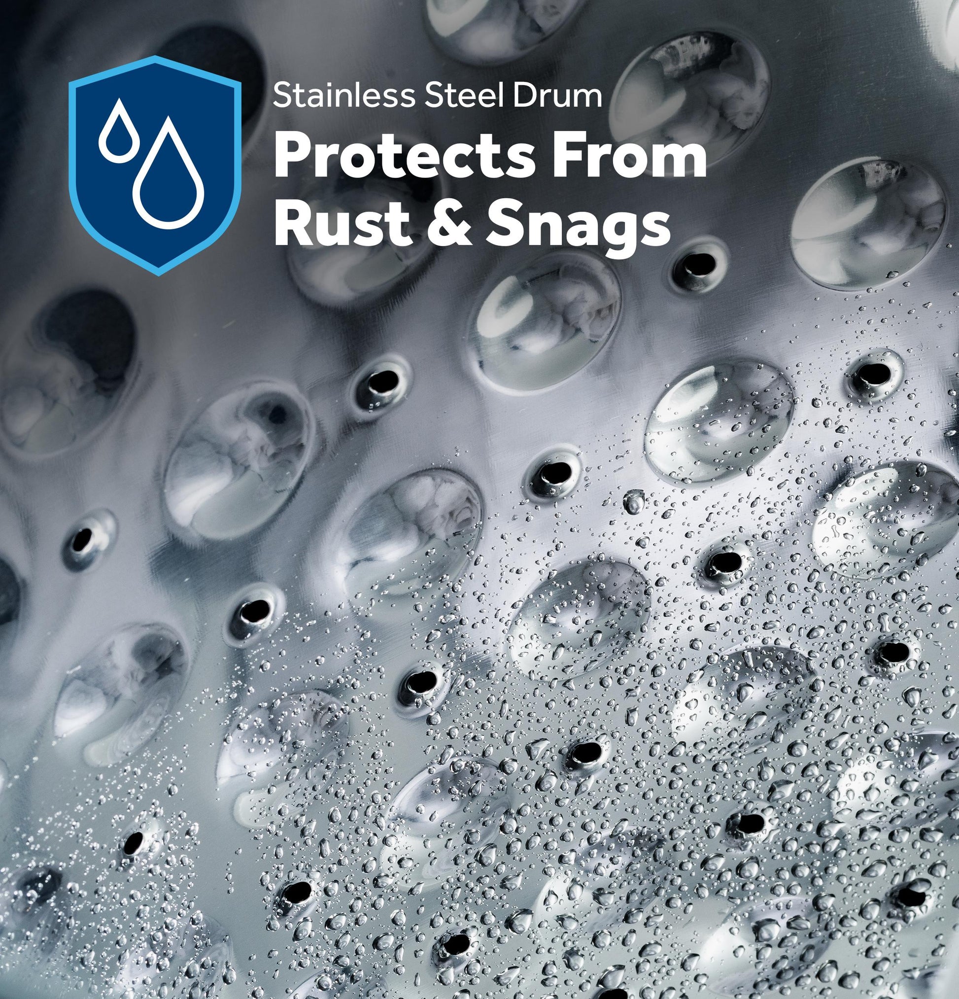 Stainless steel basket ensures both your appliance and your clothes are protected from rust, chips, peeling or snags