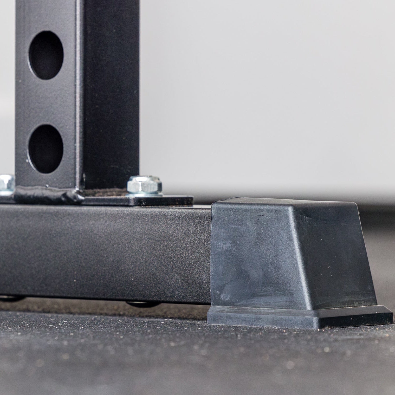 J-cups are three-pad protected to prevent your barbell from getting damaged when racked. 2" X 2" Steel tubing supports up to 700lbs static weight capacity. Sleek design, laser-cut numbers on uprights every two holes. Extended pipe safeties and extra gussets at the top of each upright add extra stability.Â