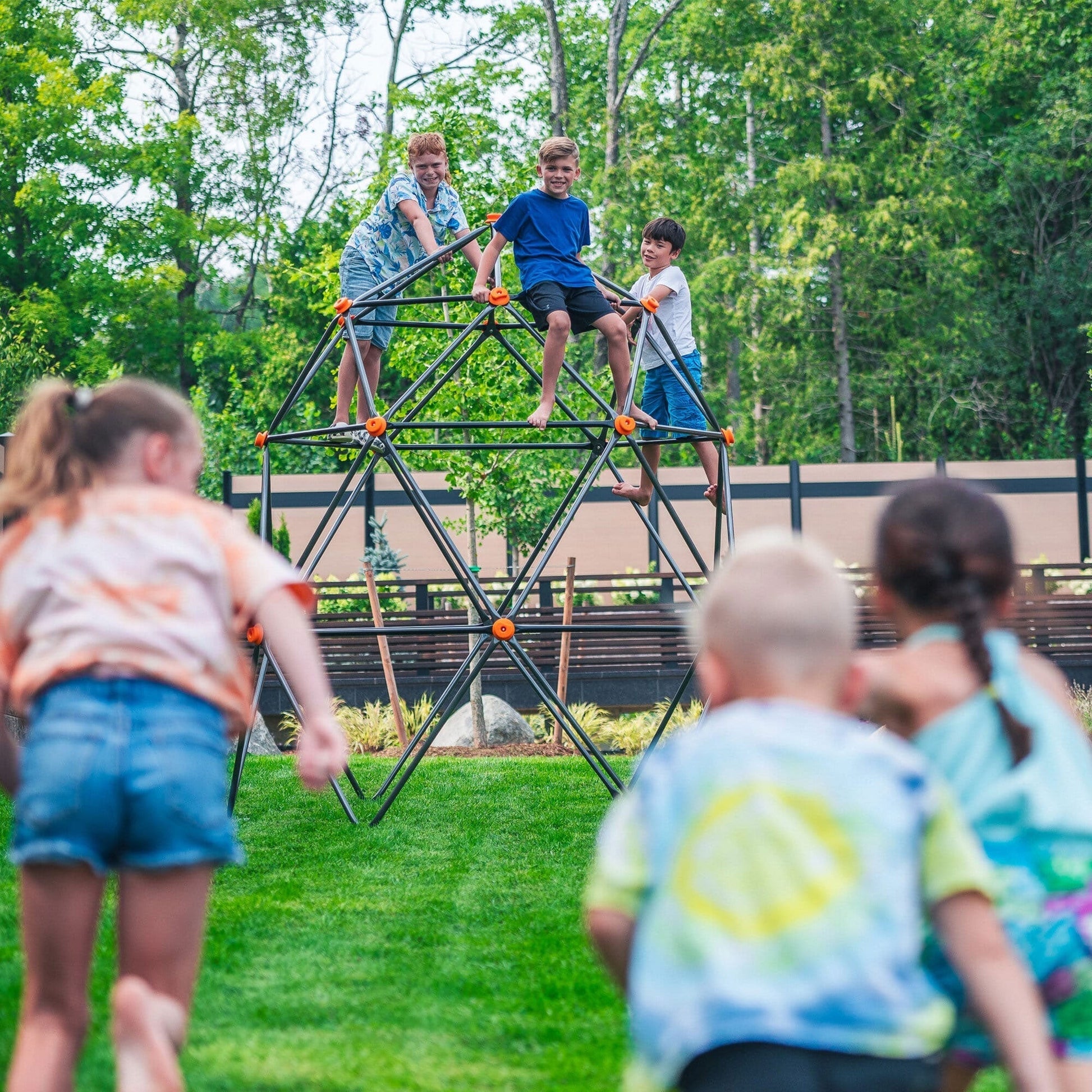 gobaplay's Large Geometric Climbing Dome offers a safe, exhilarating, and immensely fun experience all at once. At 7.5 ft tall and wide and made from sturdy non-slip powder-coated steel with attractive molded climbing grips, kids will have fun climbing for hours.