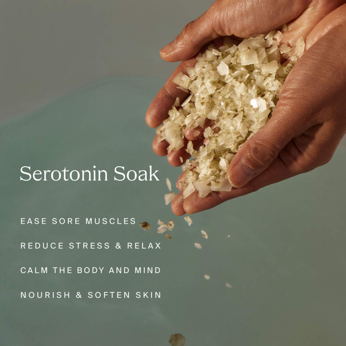 | Size & Servings | 32 oz per pouch (4 baths per pouch). Add 8 oz (4 scoops) of SEROTONIN SOAK to a hot bath |