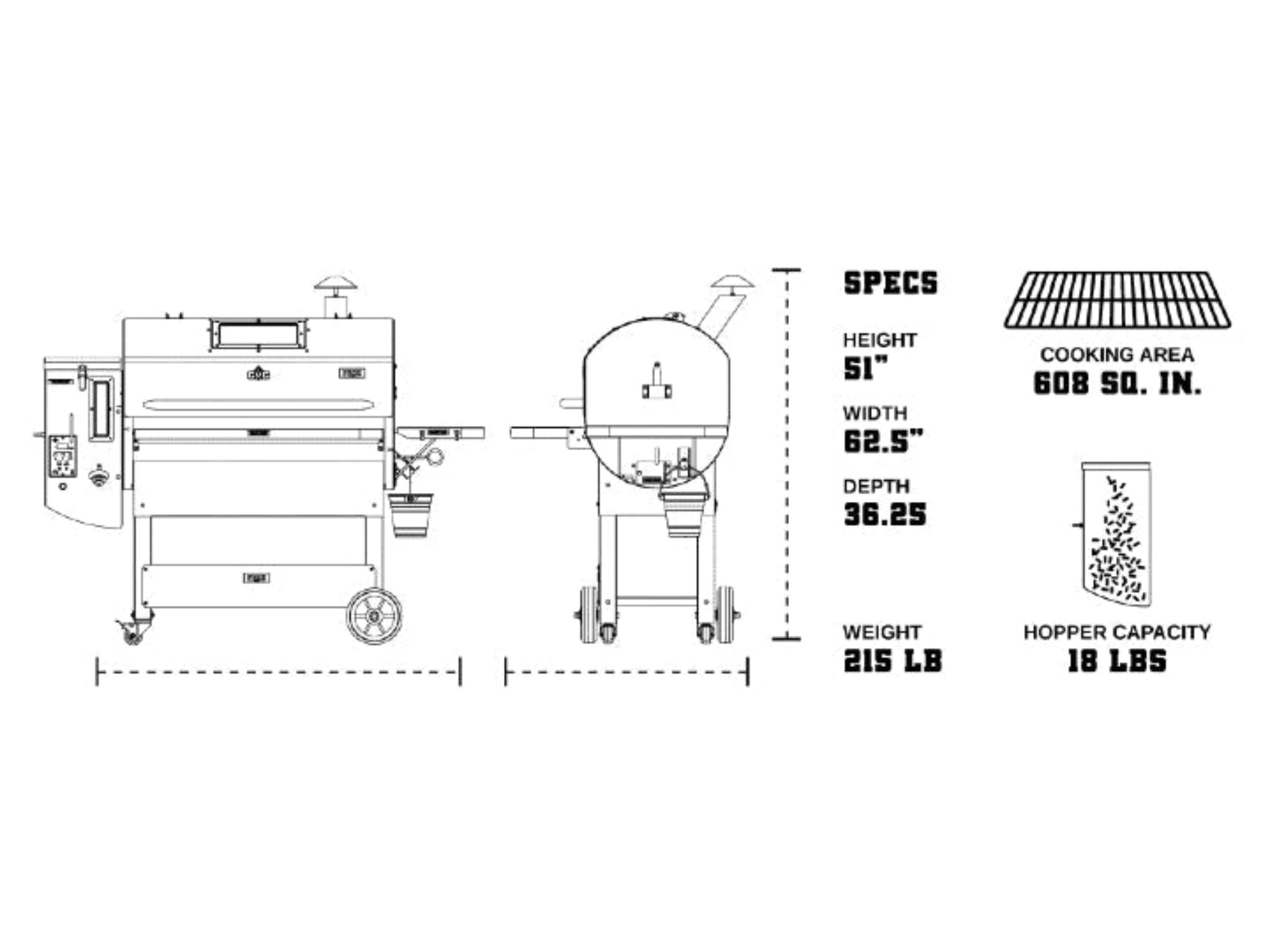 | Cooking Surface | 608 sq in |