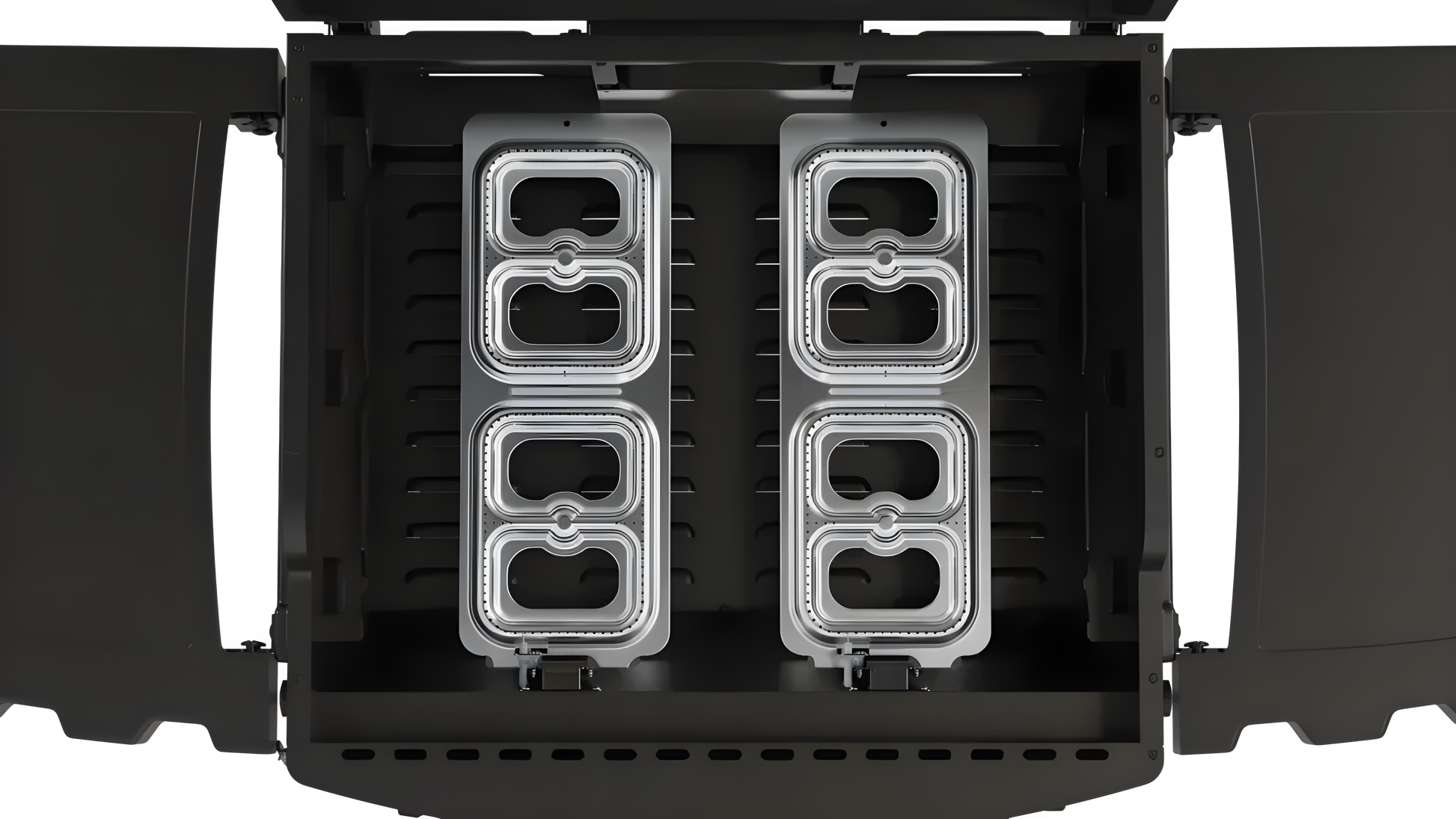 Monitor the flame effortlessly with the innovative burner site glasses, allowing for quick ignition checks from the front of the griddle. With a rapid warm-up time of just 10 minutes, achieve temperatures ranging from 300°F to 700°F swiftly. The swing-away warming rack provides additional space when needed and conveniently tucks away when not in use. Cleaning up is hassle-free thanks to the XL rear grease management system and built-in utensil clean-off squeegee.