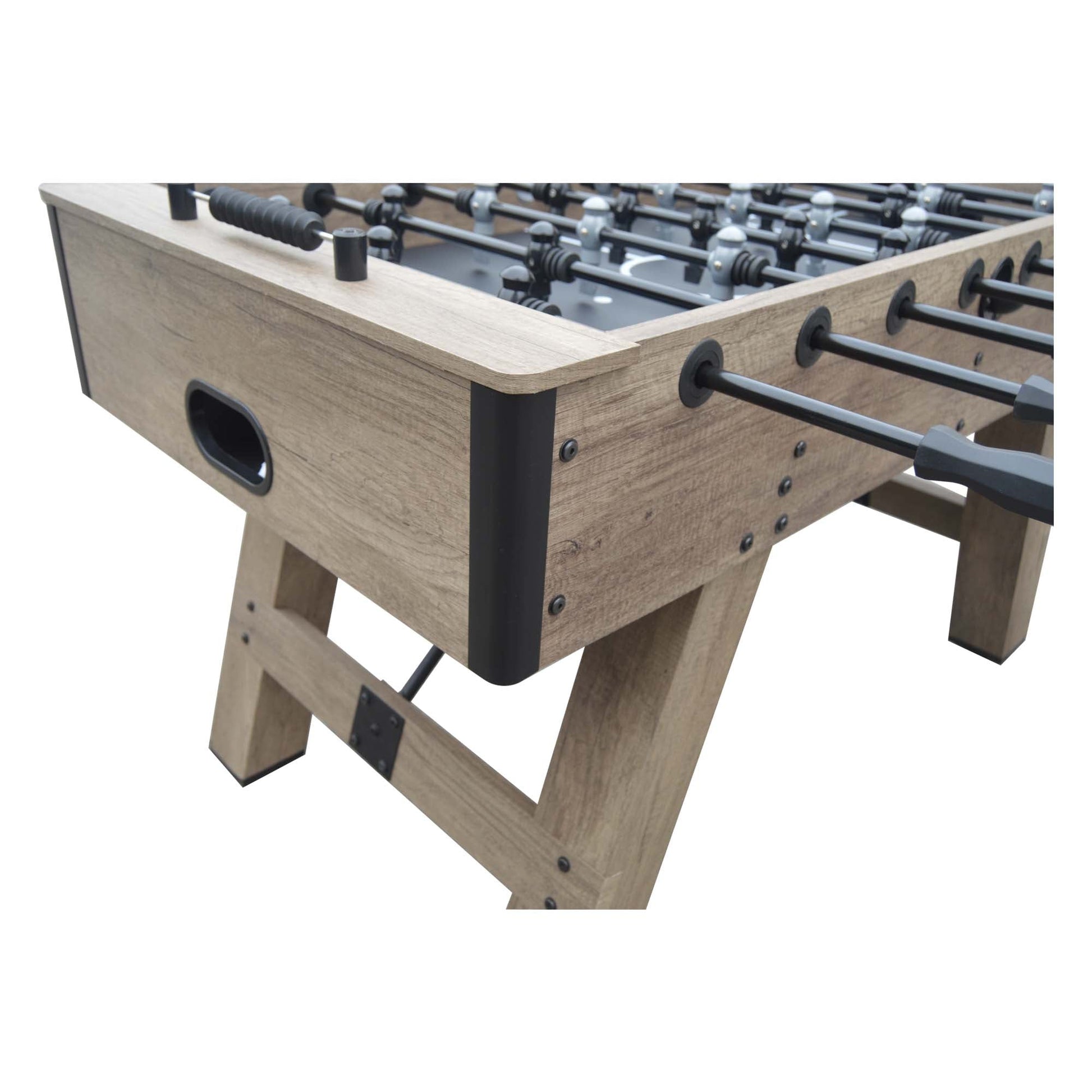 The Hathaway Braxton 55" Foosball Table combines industrial design elements with fun gameplay to create the ultimate game table. This well-built cabinet is crafted from sturdy engineered wood covered in a beautiful Barnwood finish that showcases the rich grain and natural imperfections of reclaimed wood. The foosball table features a striking black playing surface, built in end ball returns, black-steel rods, E-Z spin bearings, durable ABS players and dual manual slide scoring units. The quality components and exceptional style of the Hathaway Braxton will provide endless hours of competitive fun for you, your family and friends. 180-day limited warranty.