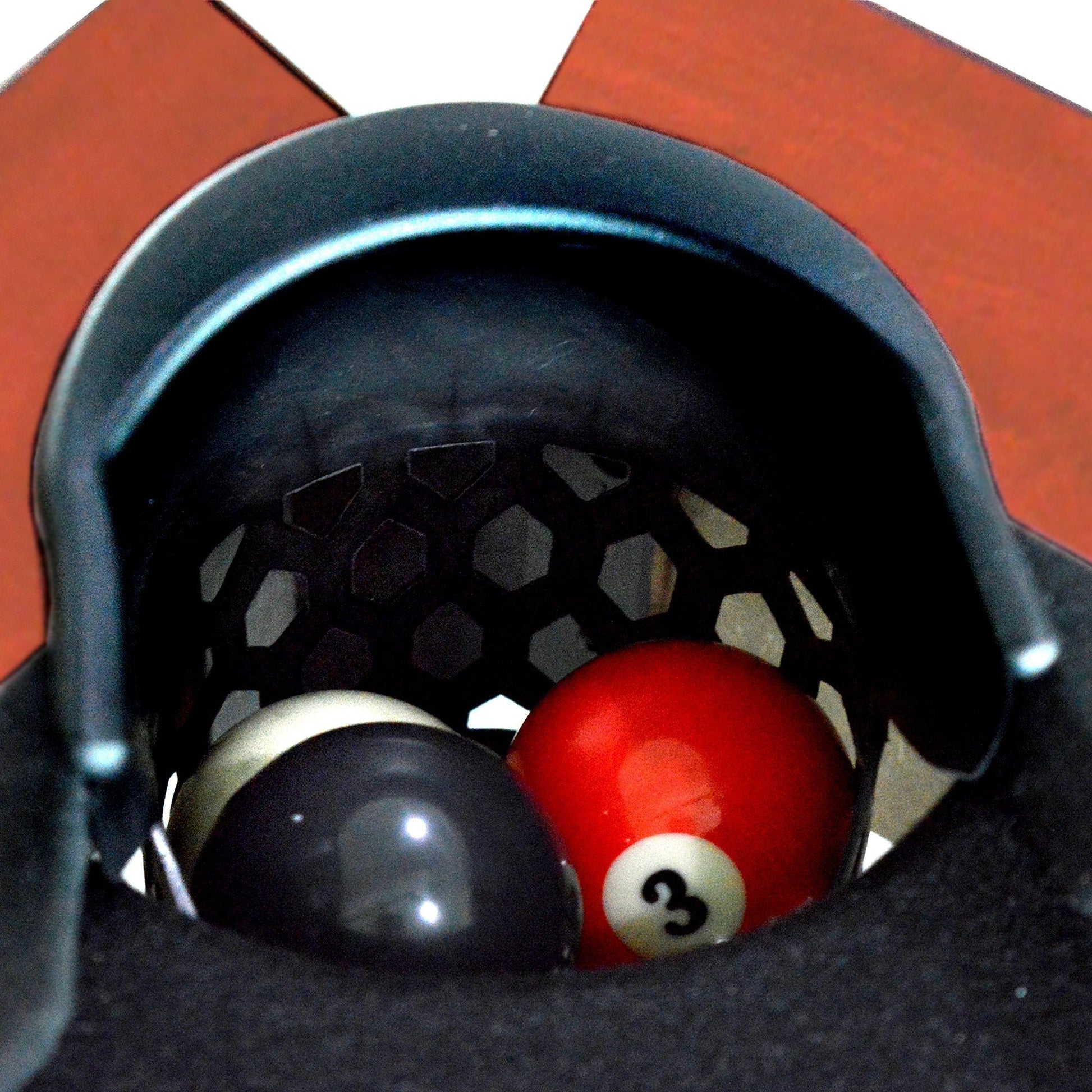 The entire frame is constructed from thick, poly-seal CARB certified MDF construction. With Cherry melamine, chrome-plated corner caps, and durable high-quality black felt, this is a luxurious addition to your home. The entire frame is supported by thick, poly-sealed pedestal-styled legs with levelers for stability. All accessories are included so start the fun now!