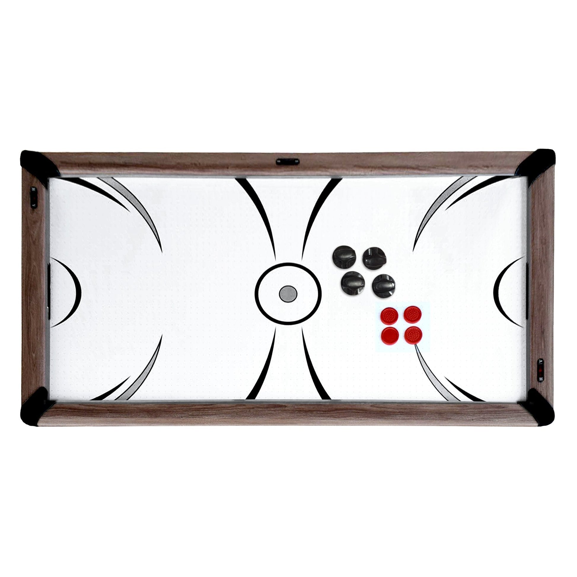 These free accessories included in your purchase are four Black strikers, four Red pucks, a ping pong table tennis net and posts, two paddles, and two ping pong table tennis balls. And with a six-month warranty, this Hathaway driftwood table offers unprecedented benefits and features any lover of tabletop gaming shouldn’t miss out on.