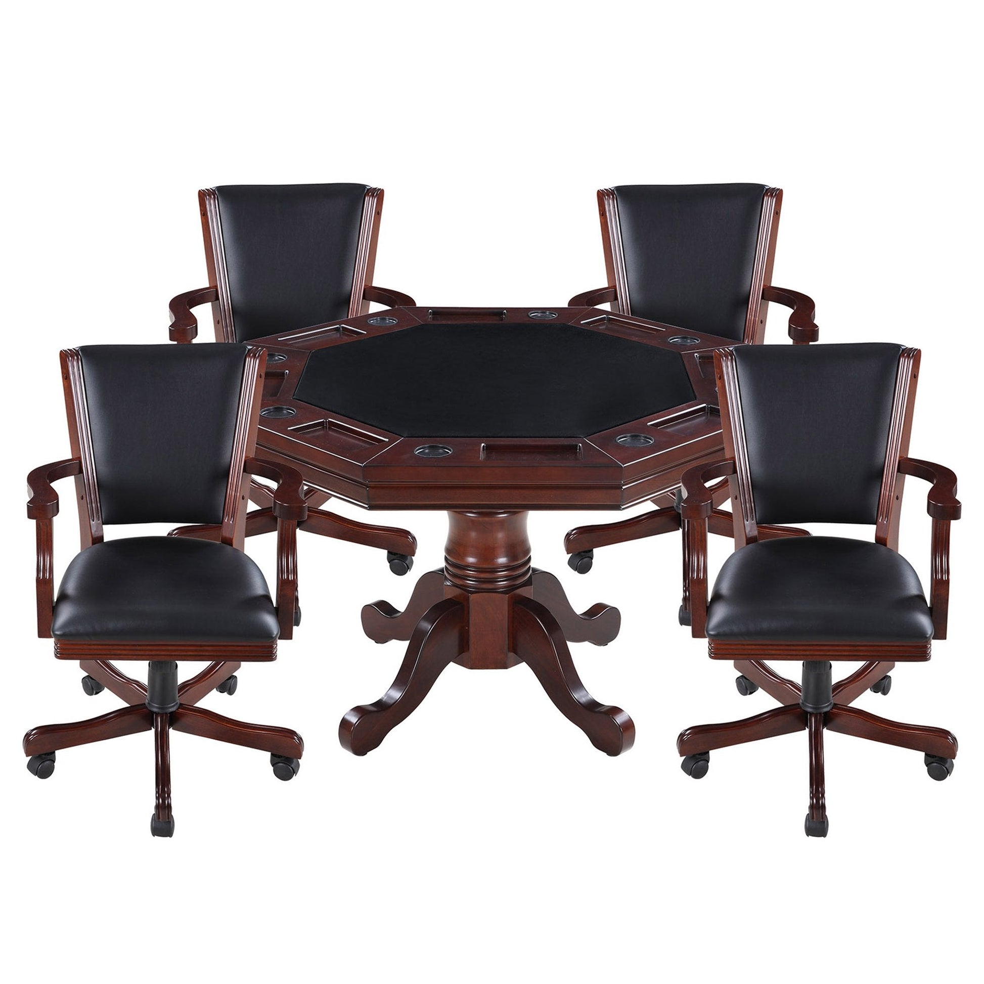 Why not raise your standards and invest in this Hathaway North American hardwood 3-in-1 pedestal table and armchair set. With a nice walnut finish that will instantly enhance the look of your game room, you can easily choose between its three distinct configurations: a poker table, a bumper pool table or a card table. With a diameter of 48 inches this octagon poker table can fit up to 8 people.