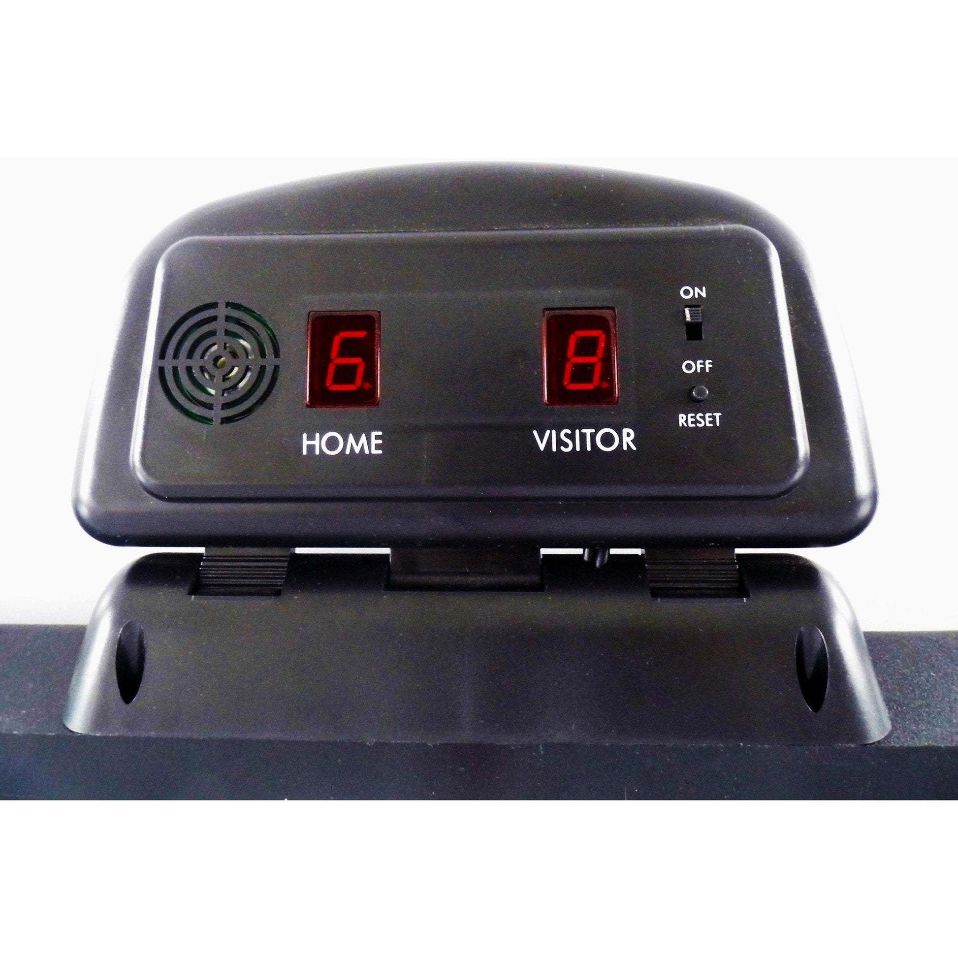 Finished off with clean, contemporary lines and a compact design, this table is perfect for families. The hockey-themed surface adds an exciting dimension that will be enjoyed by all. Accurate, easy-to-read LED electronic scoring unit keeps track of the competition between rivals so you can enjoy the most out of this action-packed game!
