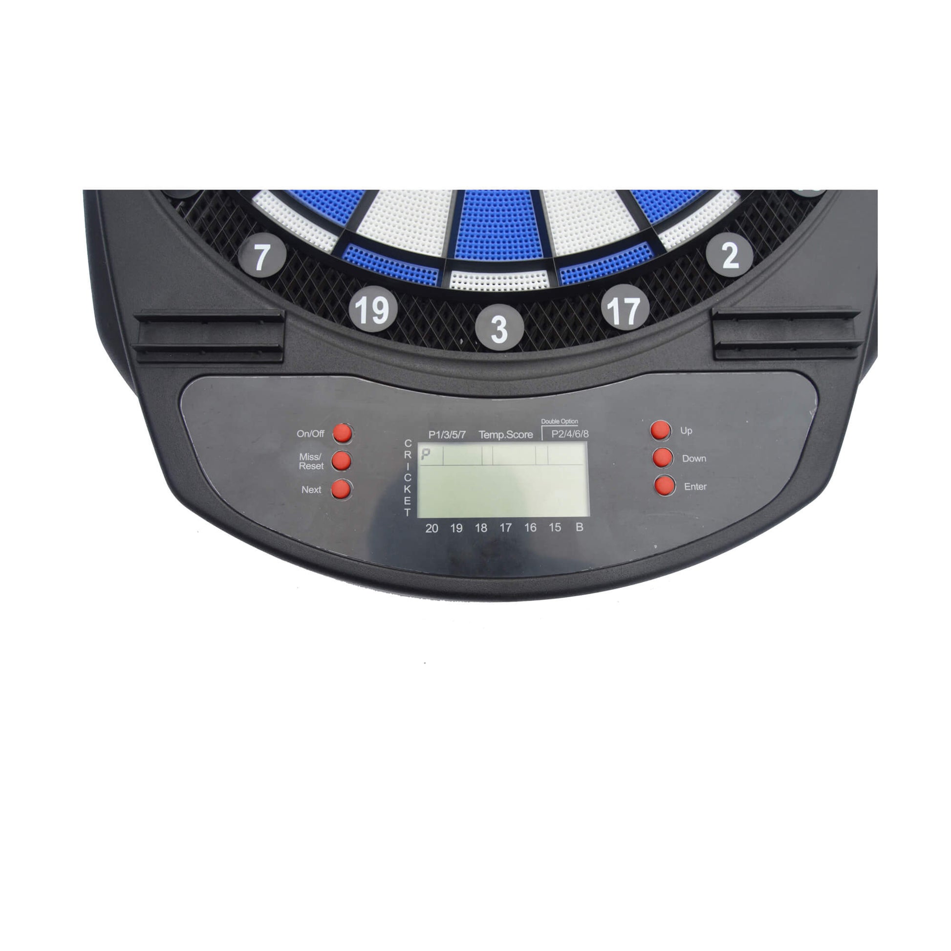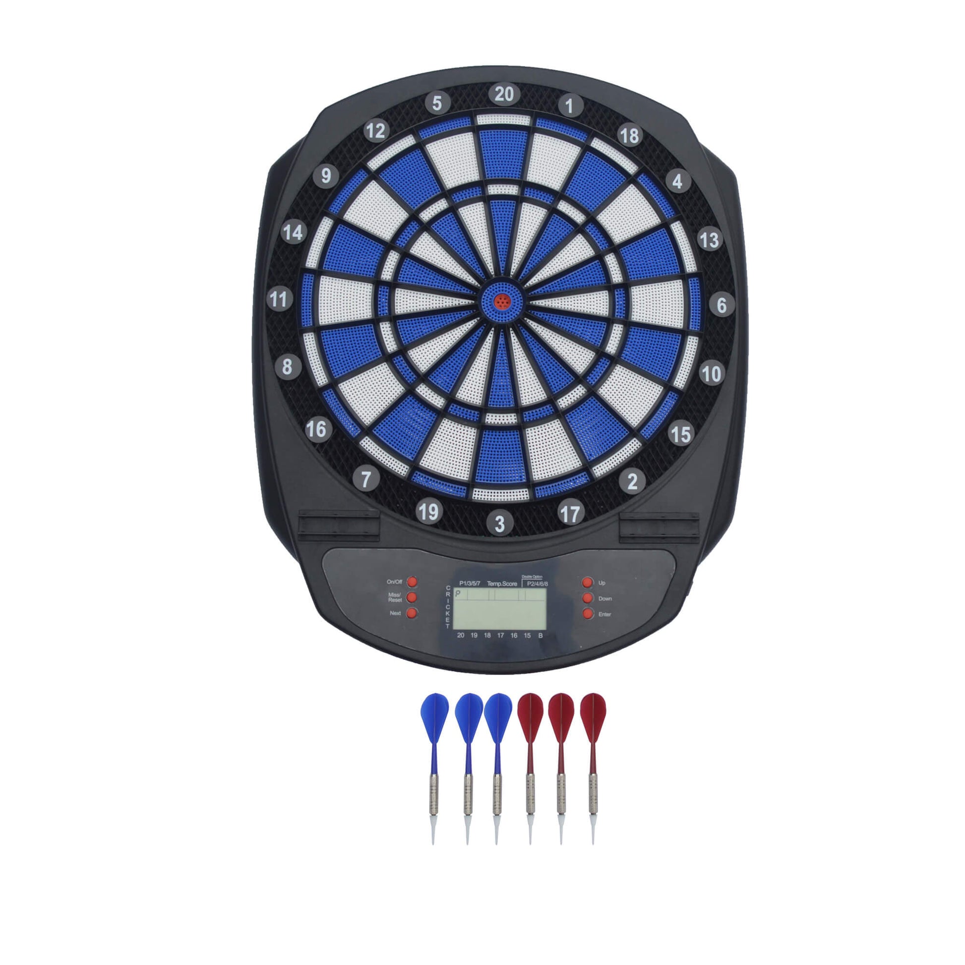 The sleek stylish look and high-quality components of the Hathaway Ventura 55" Foosball Table with Bonus Electronic Dart Board combine to create one of the most dynamic tables on the market today. The cabinet is constructed from durable engineered wood covered in a handsome blue and black melamine. The foosball table features built in end ball return, stainless-steel rods, E-Z spin bearings, ABS players, ergonomic true grip handles, dual abacus style scoring units and independent leg levelers. The exceptional quality of the Hathaway Ventura will provide endless hours of competitive exciting fun for you, your family and friends. Double the fun with the included Electronic dart board set! Includes all the accessories you need to play foosball and darts. 180-day limited warranty