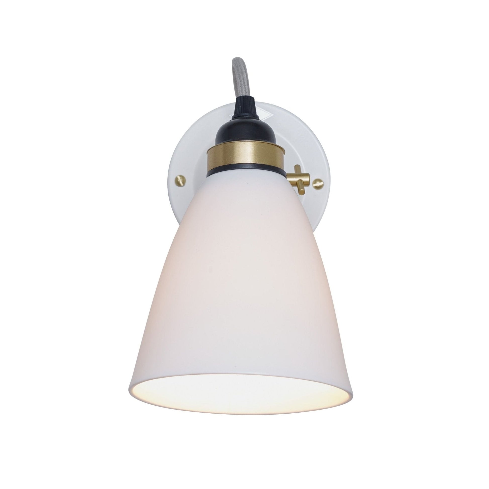 The classic Hector updated for Original BTCs 30th Anniversary with beautiful satin brass metal work that compliments the bone china wonderfully, adding a further touch of warmth to the Hector range. This is a practical, space-saving sconce that offers a subtle source of ambient light adding a warm inviting feel to the room.