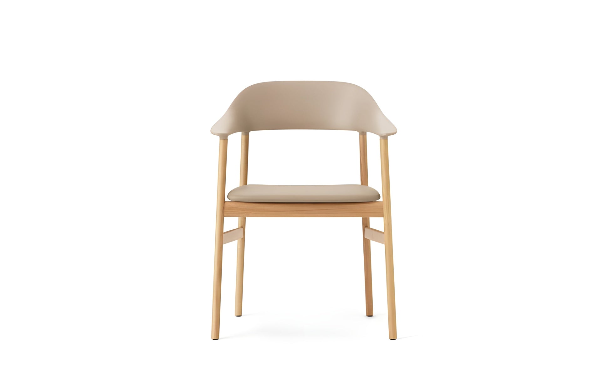 The Herit Armchair - Oak - Upholstered Seat - Set of 2 from Normann Copenhagen brings together tradition and modernity. Designed by Simon Legald, this chair features a solid oak frame and a comfortable, upholstered seat. Its clean lines and minimalist design make it a versatile addition to any space, whether for a living room, office, or commercial setting.