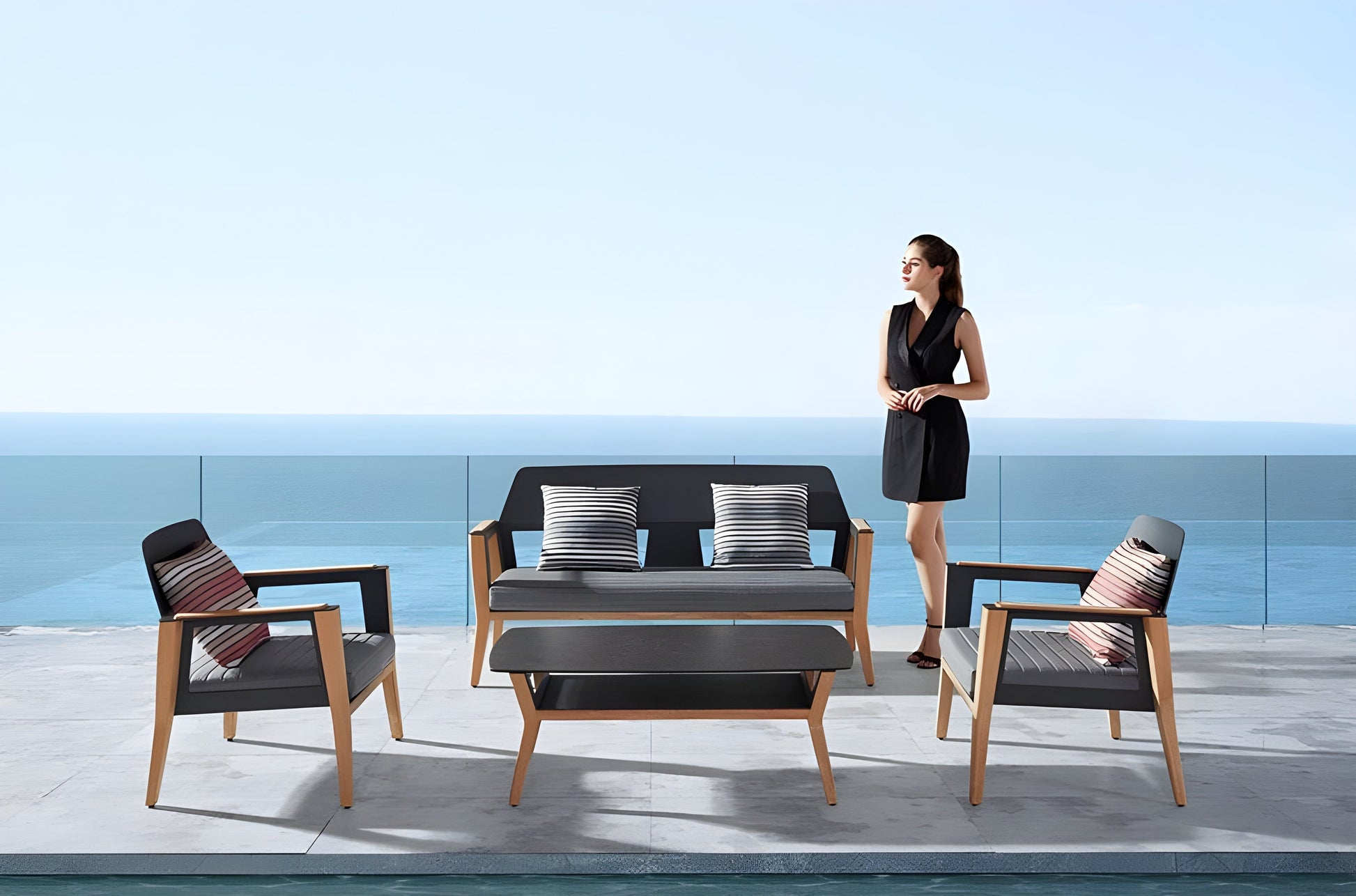 A: Key features include high-quality black upholstery, ergonomic cushions for optimal comfort, a durable frame, and a contemporary design that fits seamlessly into modern or minimalist interiors.