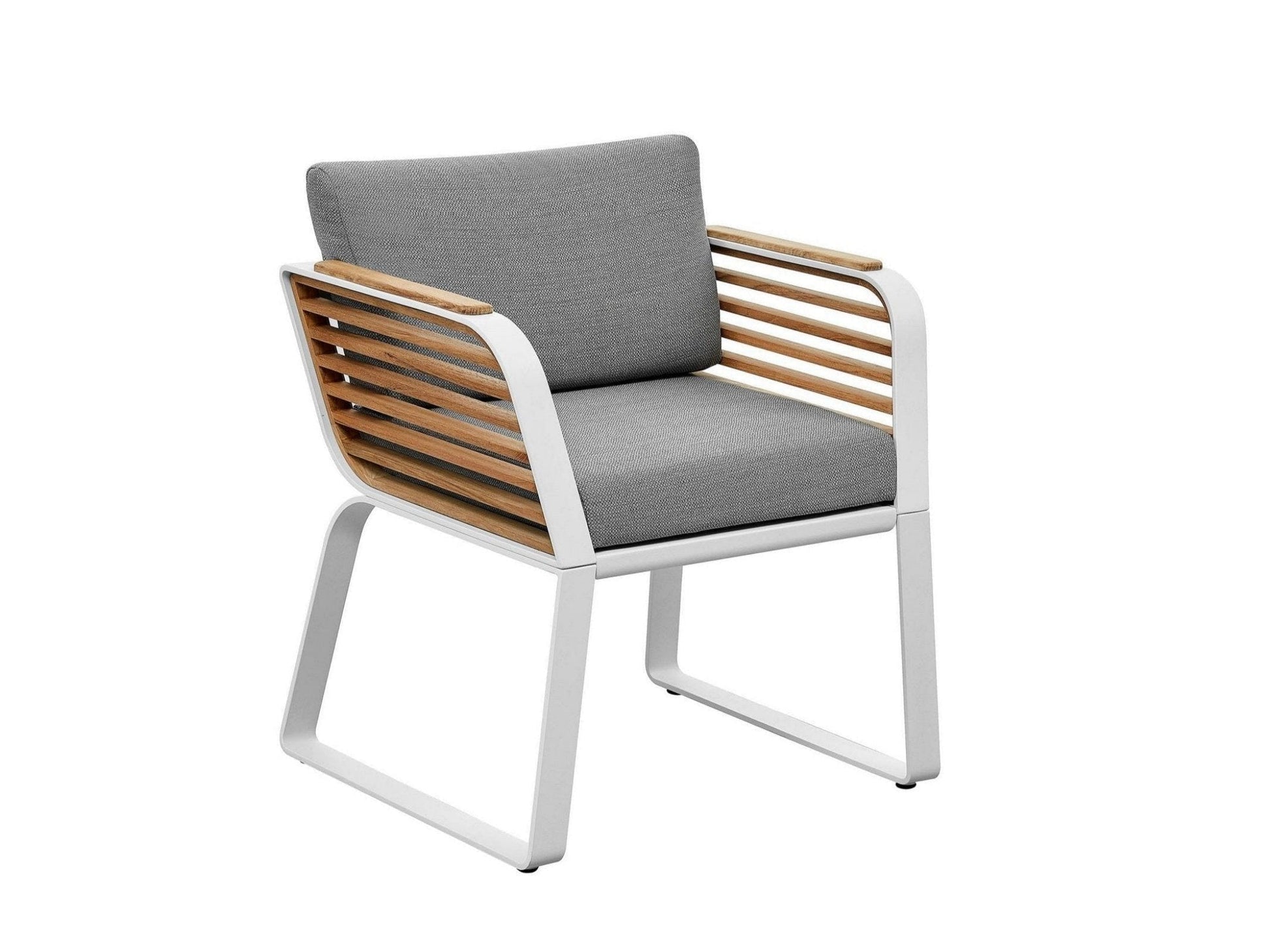 The HiGold Wing collection offers a new and elegant dining chair for all to enjoy. Taking inspiration from modern urban structures and sleek aeronautica design, this collection provides an aluminum structure enriched by geometric and essential lines that recall the world of architecture. Featuring the Dura-Firm cushions from HiGOLD and timeless teak slats in the seat arm structure, the Wing collections offers a refreshing seating or dining experience.