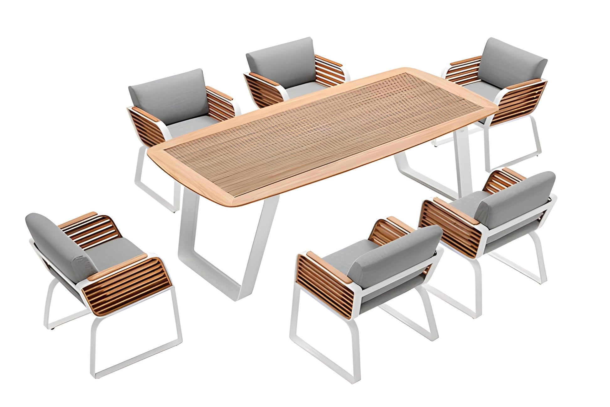 A: Ideal for homeowners, designers, or businesses seeking a modern and high-quality dining set for patios, gardens, or commercial outdoor areas.