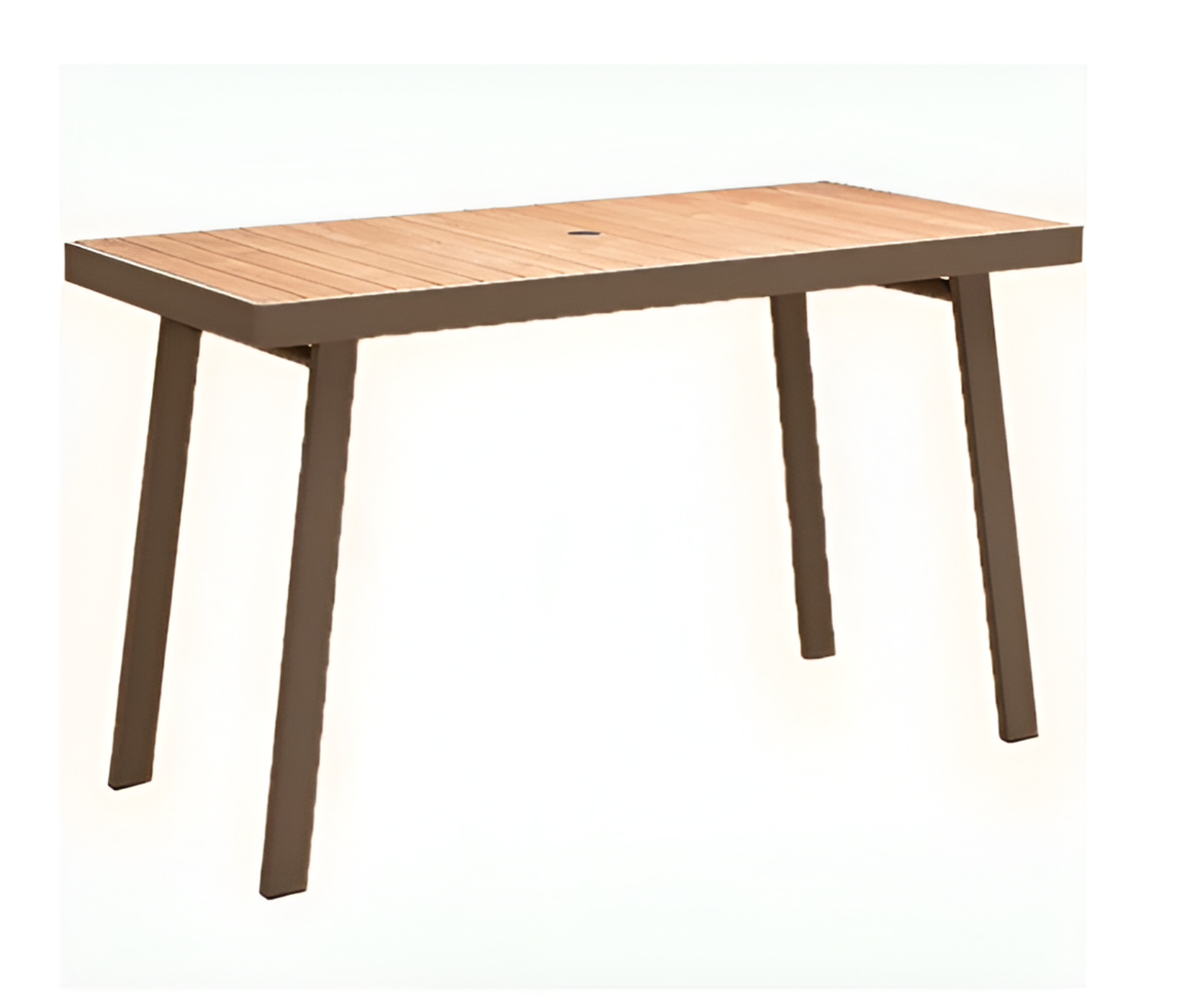 The HiGold York collection bar dining set features clean lines and a smooth combination of teak and aluminum. Seating pieces feature convenient flip-up side tables, maximizing space and efficiency. York’s cutting edge style doesn’t sacrifice comfort – premium foam cushions ensure a soft seat perfect for hours of lounging.