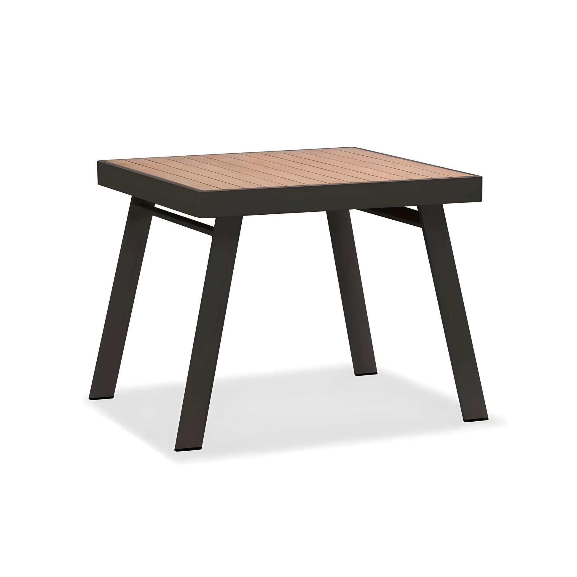 A: A stylish and durable outdoor dining set featuring a square table and comfortable armchairs, perfect for intimate gatherings.