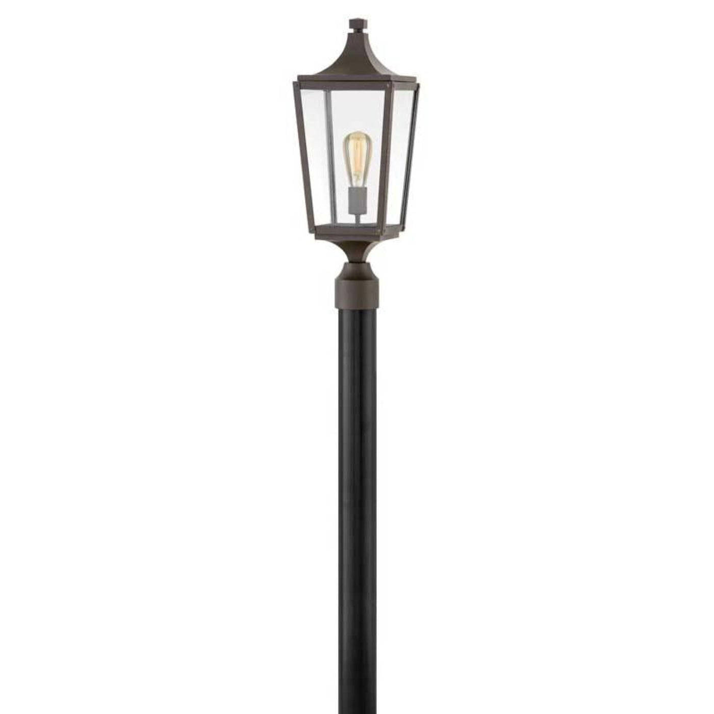 Jaymes features an updated traditional silhouette in an Oil Rubbed Bronze finish that is both modern and elegant. Constructed of die-cast aluminum, the rivet details, cast finials and sweeping roof signify a new classic in lantern design. Ideal for vintage filament bulbs for a timeless appearance.