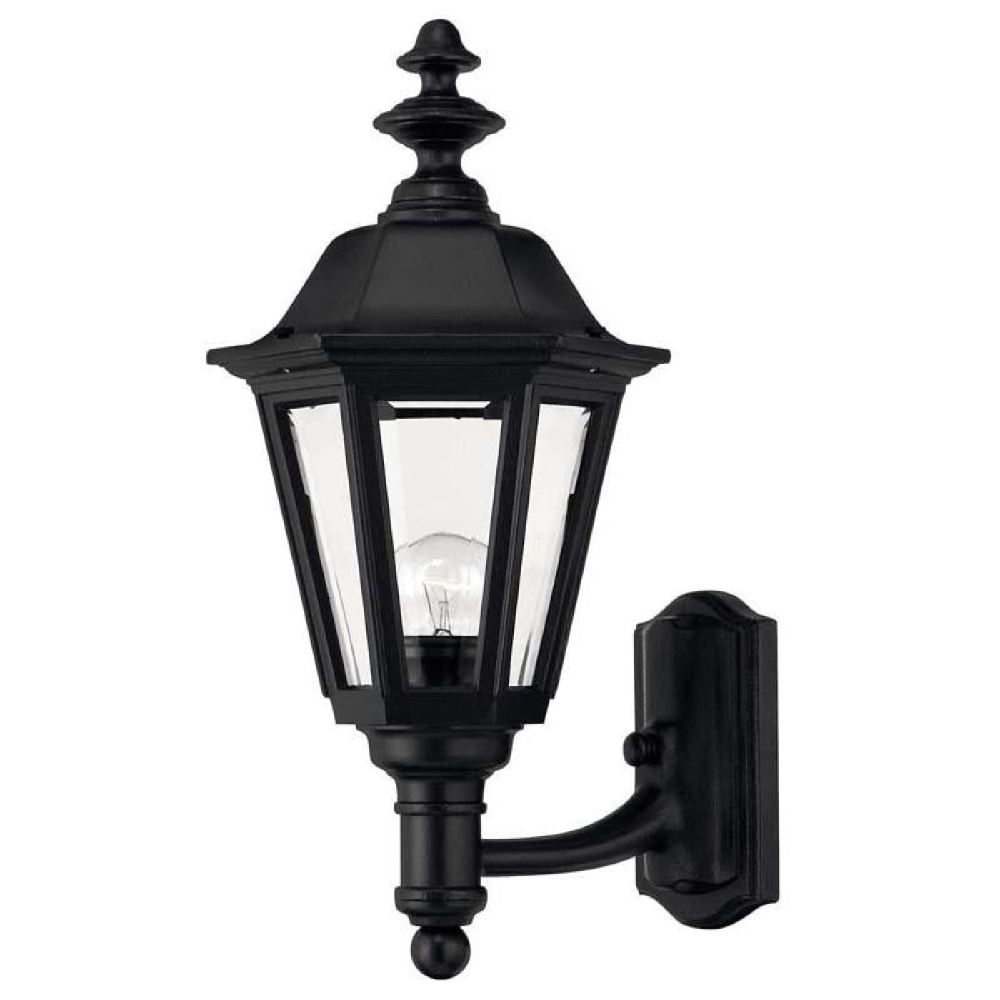 Manor House is a classic lantern design featuring durable cast aluminum, clear beveled glass panels and a bold Black finish. Select-A-Lite options come standard with both candelabra and medium based sockets.