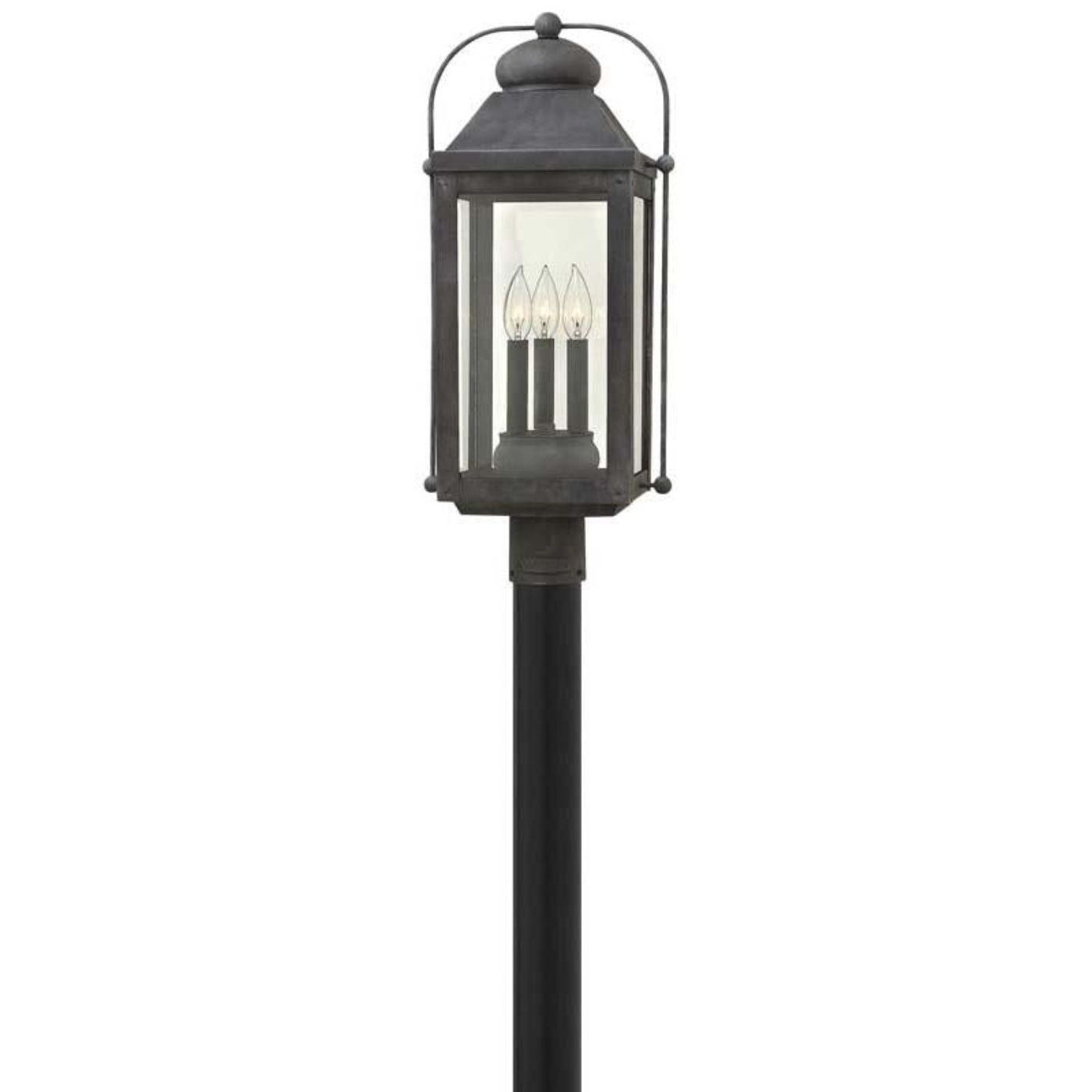Anchorage is an early American lantern design crafted of solid aluminum to reflect a bold yet refined silhouette. The Aged Zinc and Light Oiled Bronze finish and clear glass complement the long clean lines, elegant arched carriage handle and sturdy knobs, resulting in a vintage style with classic charisma. The Heritage Collection encompasses premium outdoor fixtures that pay tribute to the nostalgia of America's past while reinforcing Hinkley's philosophy of timeless, quality design.