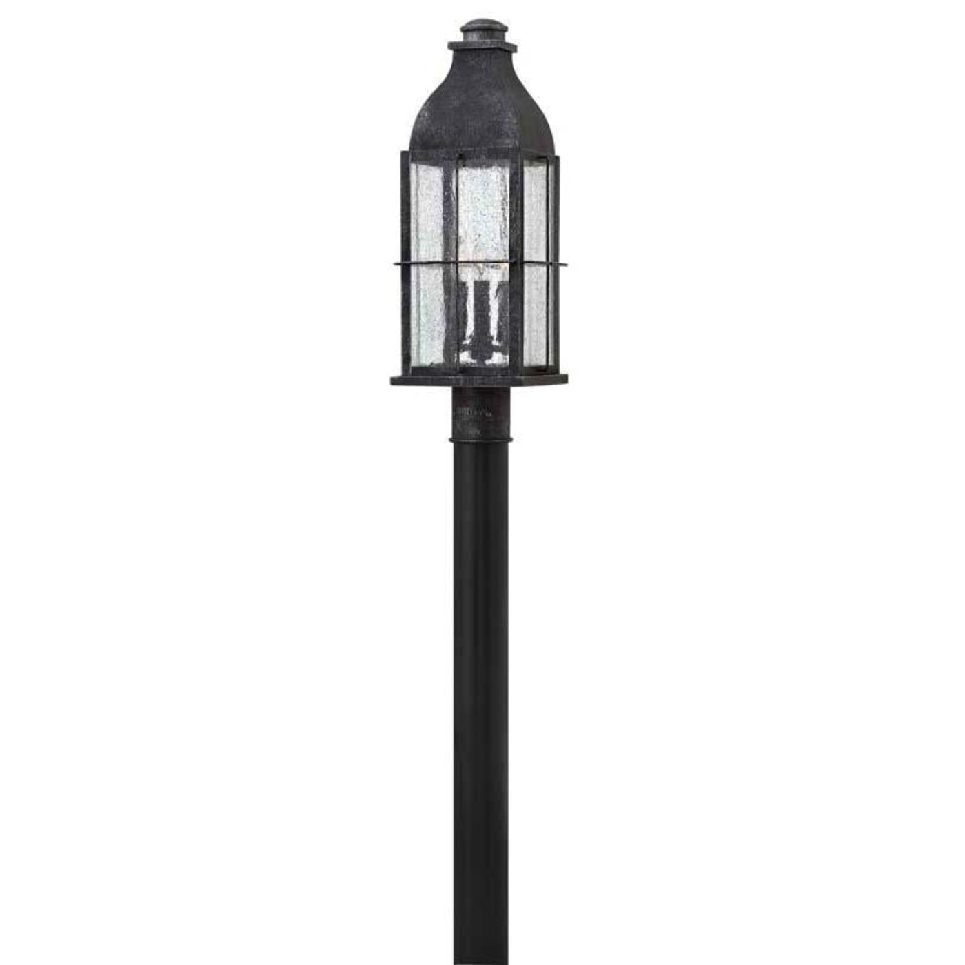 Binghams traditional style recalls a turn-of-the-century gas light reproduction. The vintage look is nautical in nature and recognizes Hinkleys origins on the shores of Lake Erie. The aluminum and brass construction features clear seedy glass and a Greystone finish, while candelabra lamping completes the authentic style. The Heritage Collection encompasses premium outdoor fixtures that pay tribute to the nostalgia of America's past while reinforcing Hinkley's philosophy of timeless, quality design.
