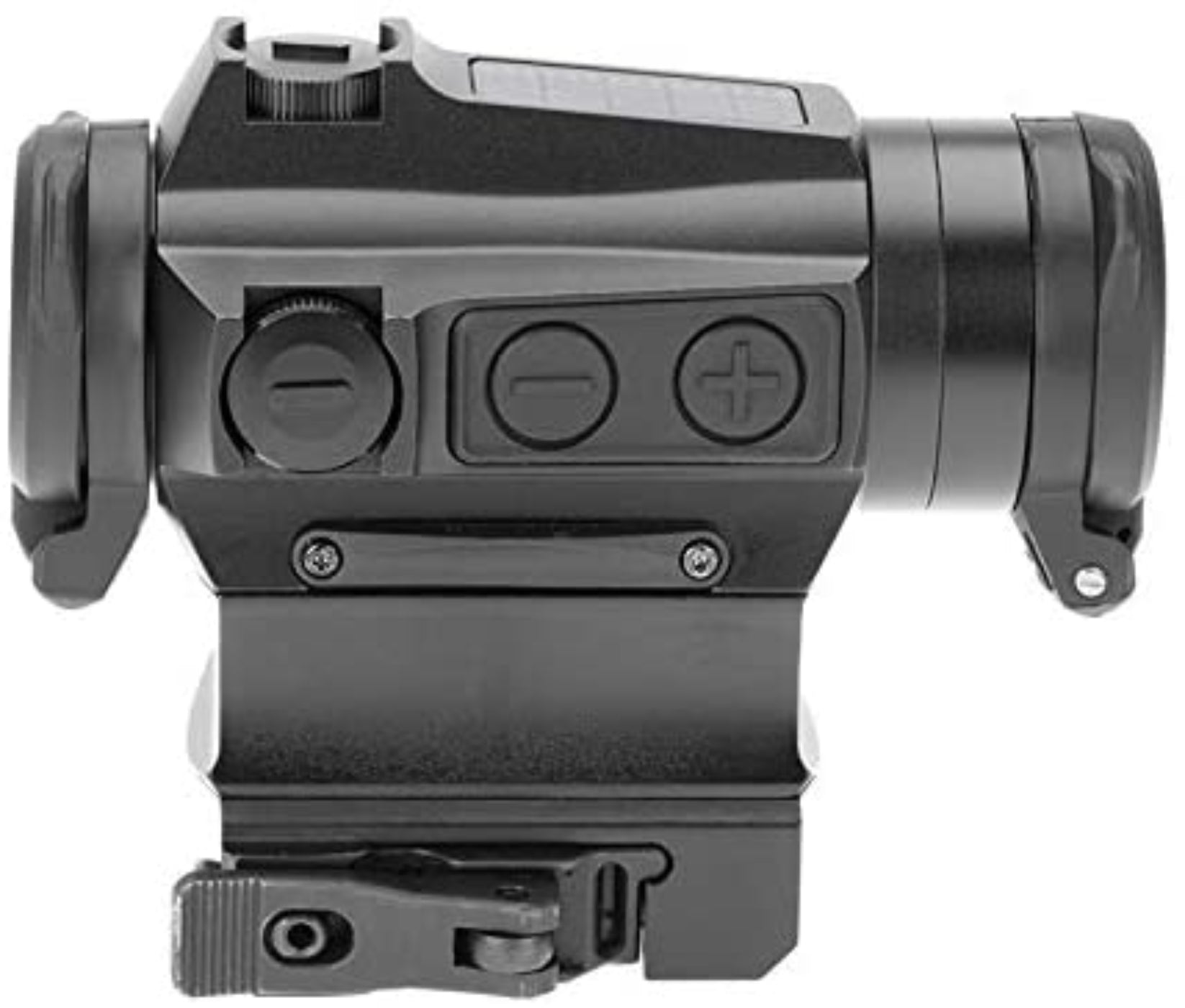 is a 20mm micro optical sight designed for rifle and carbine applications. Features include 7075 Aluminum Housing, Solar Failsafe, Shake Awake, 12 brightness settings, Holosun’s Super LED with up to 50k hours battery life, Multi-Reticle System, QD mount, Kill flash, and Clear Lens Caps.