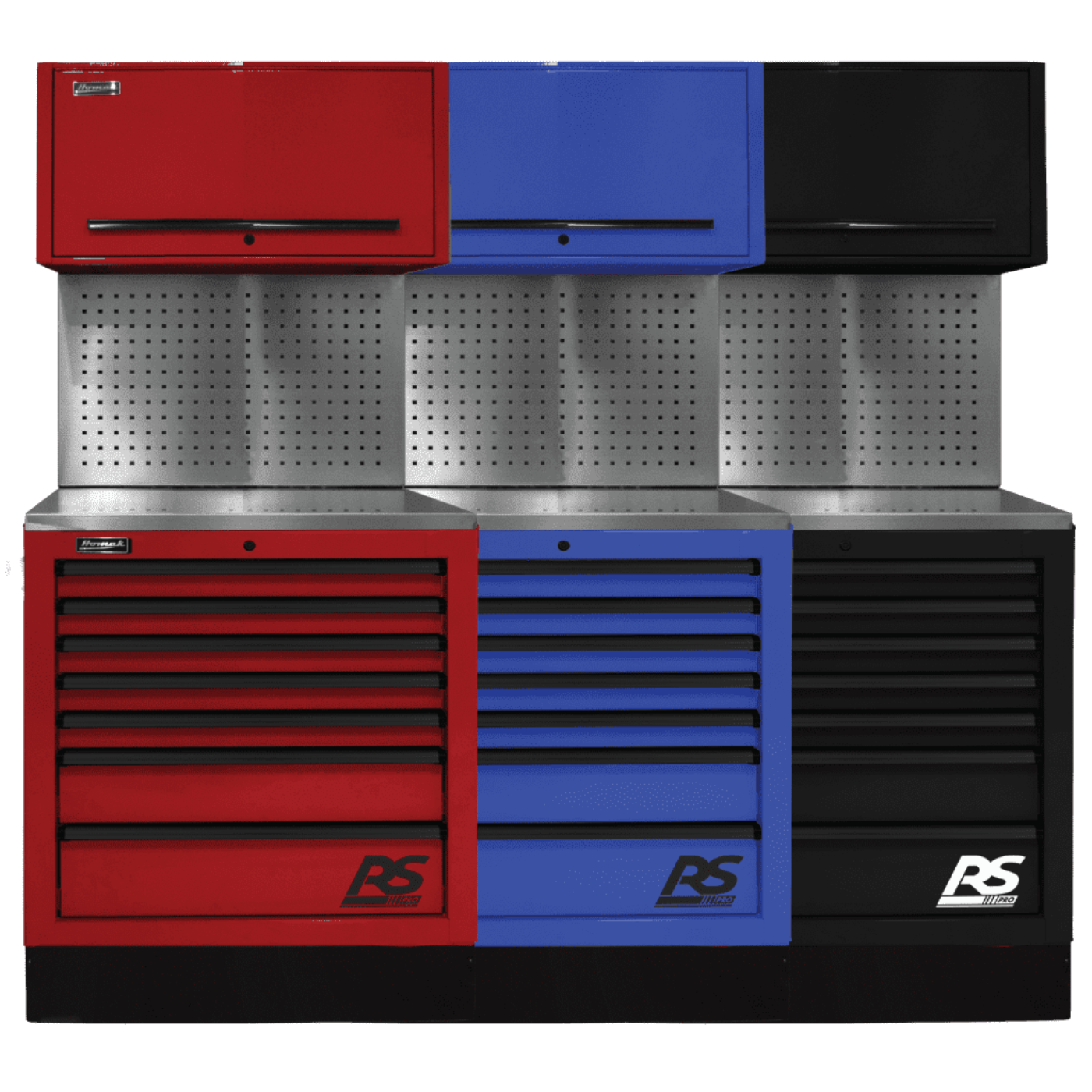 The Homak 36 CTS Set with a solid/toolboard back splash is a comprehensive addition to your garage or shop, offering multifunctional utility. This set comprises 7 spacious drawers and an overhead canopy, facilitating flexible organization of your tools and equipment. The drawers, equipped with PVC foam liners, safeguard the surfaces from scratches and stains, ensuring the protection of your tools. Additionally, the stainless steel top provides a durable work surface, enabling you to perform various tasks with ease and durability within your workspace.