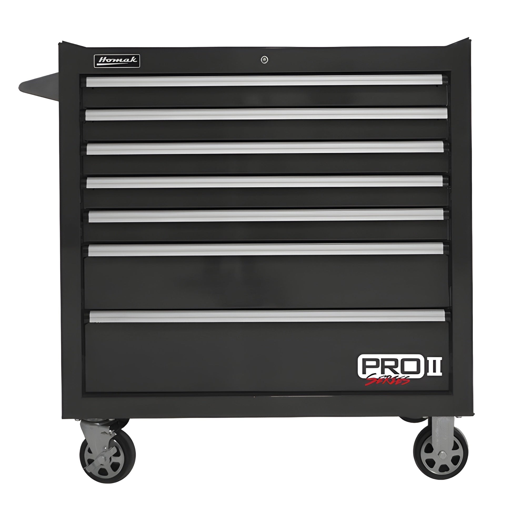 Q: What is the size of the Homak 36” Pro II Series 7 Drawer Roller Cabinet?