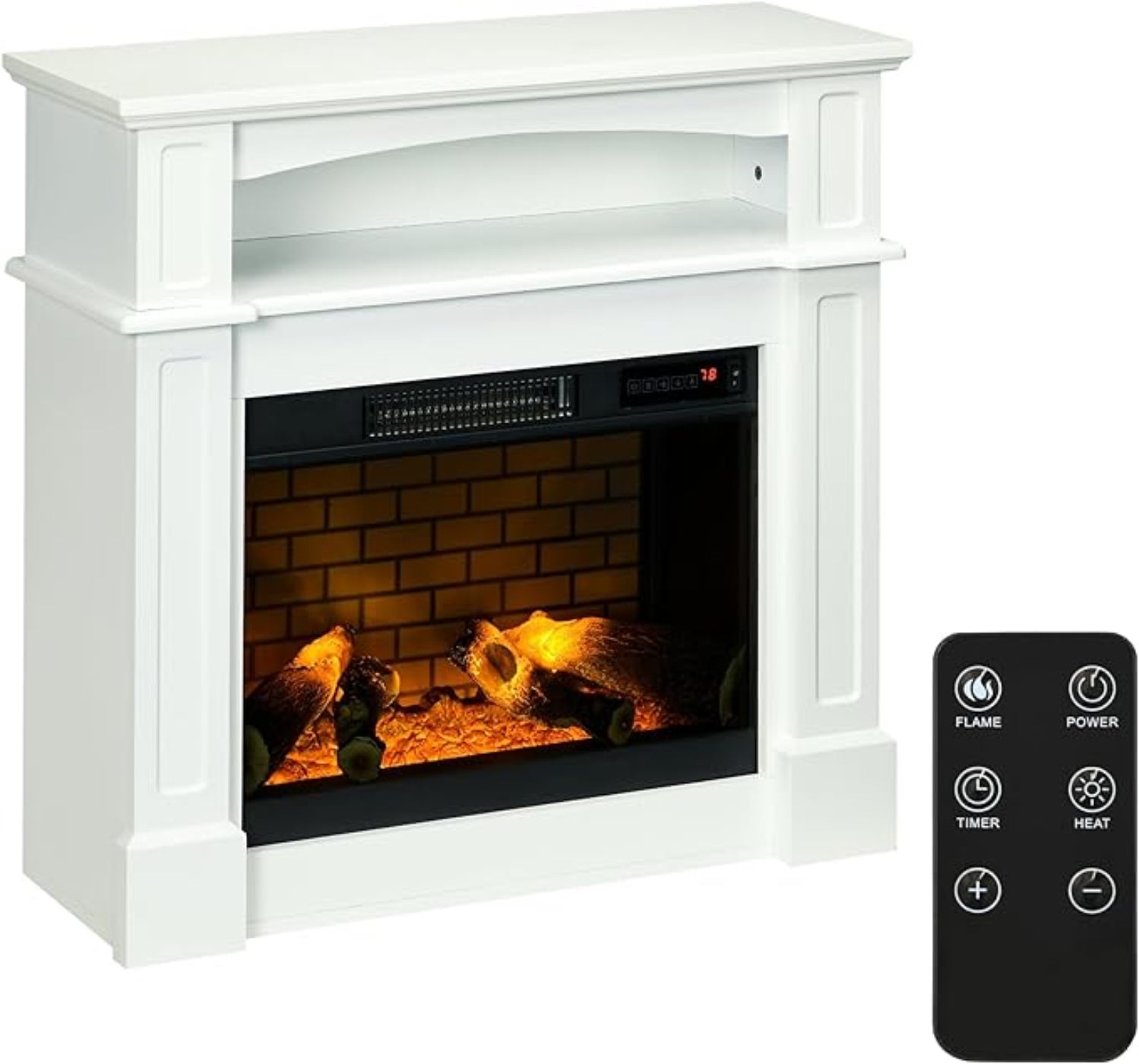 HomCom 32" Electric Fireplace with Mantel, Freestanding Heater with LED Log Flame - B09GVD4MV4