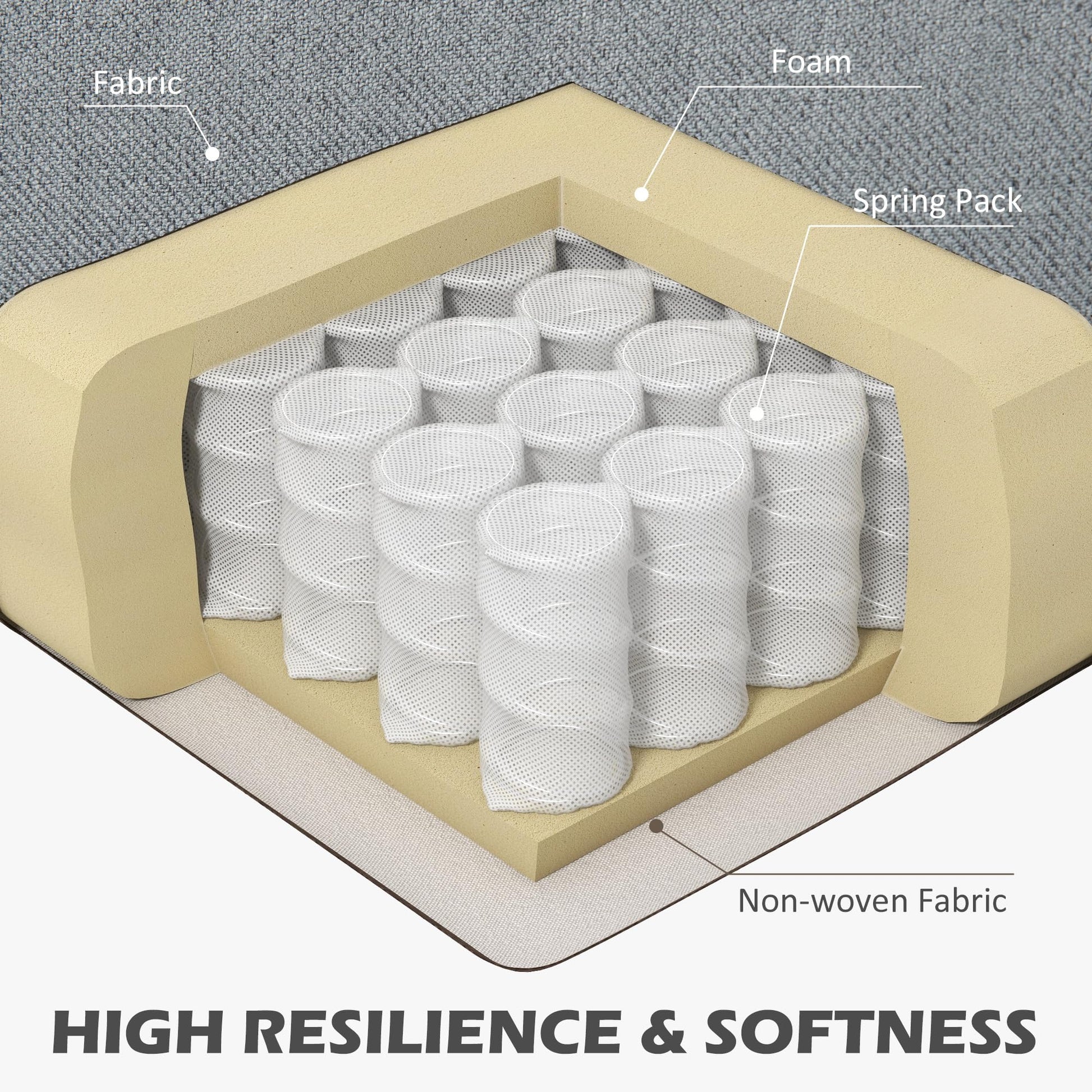 - Cozy Time: This L-shaped sofa provides you with the softness, resilience, and support you deserve. It has breathable linen-feel fabric, 6" high-density foam padded seat cushions with a spring pack, 7.75" overstuffed back cushions, two extra pillows, and two armrest cushions.