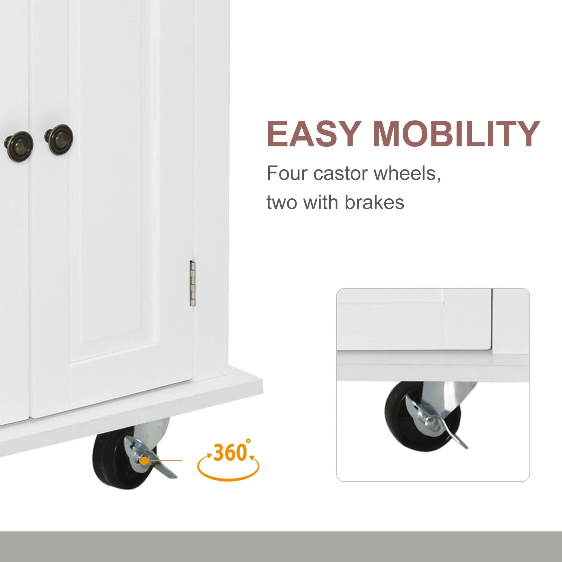 HomCom Kitchen Island on Wheels, Rolling Cart with Rubberwood Top - B08L44DQF8