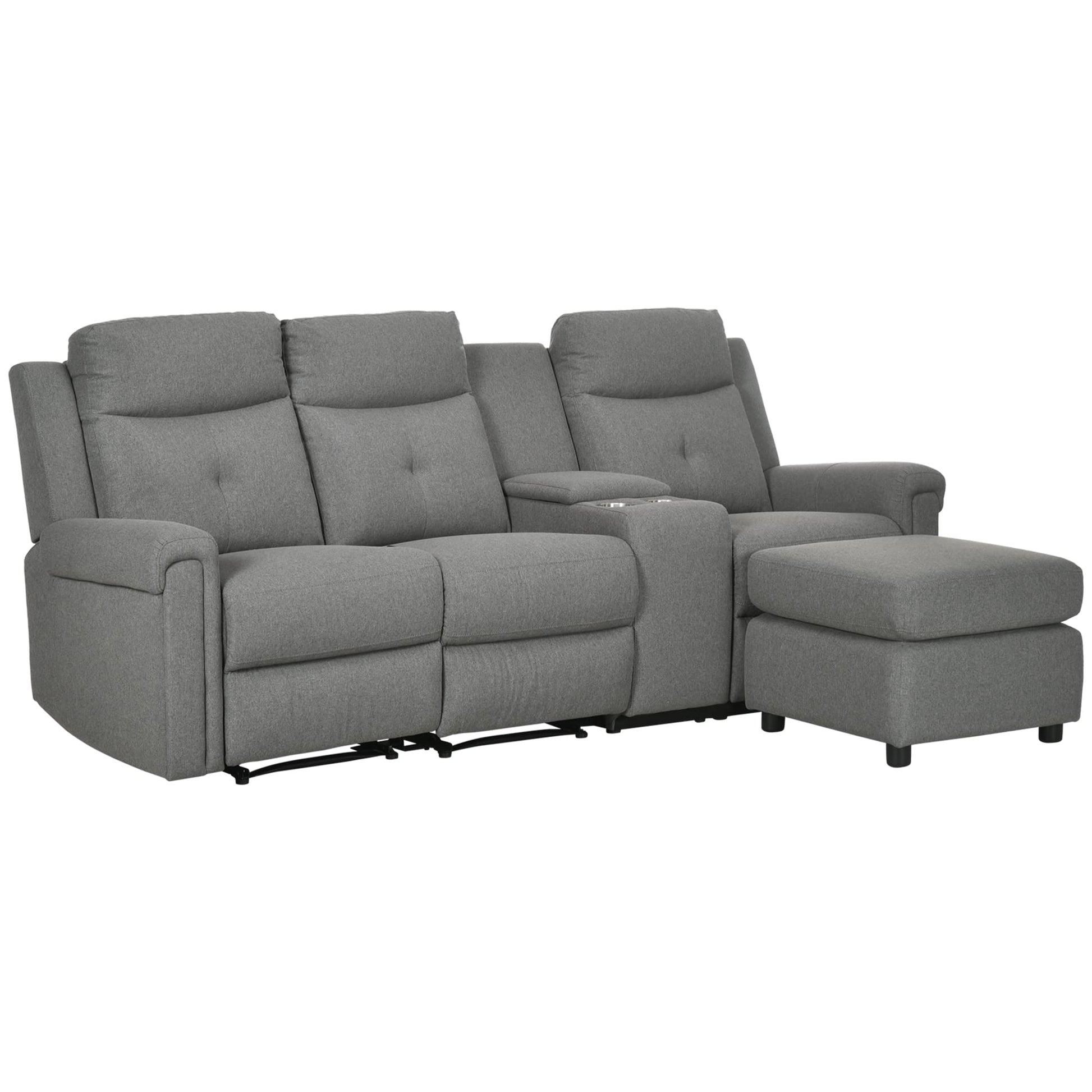 HomCom L-Shaped Sofa, Manual Reclining Sectional with Chaise Ottoman, Storage Console - B08VQ9L5S7