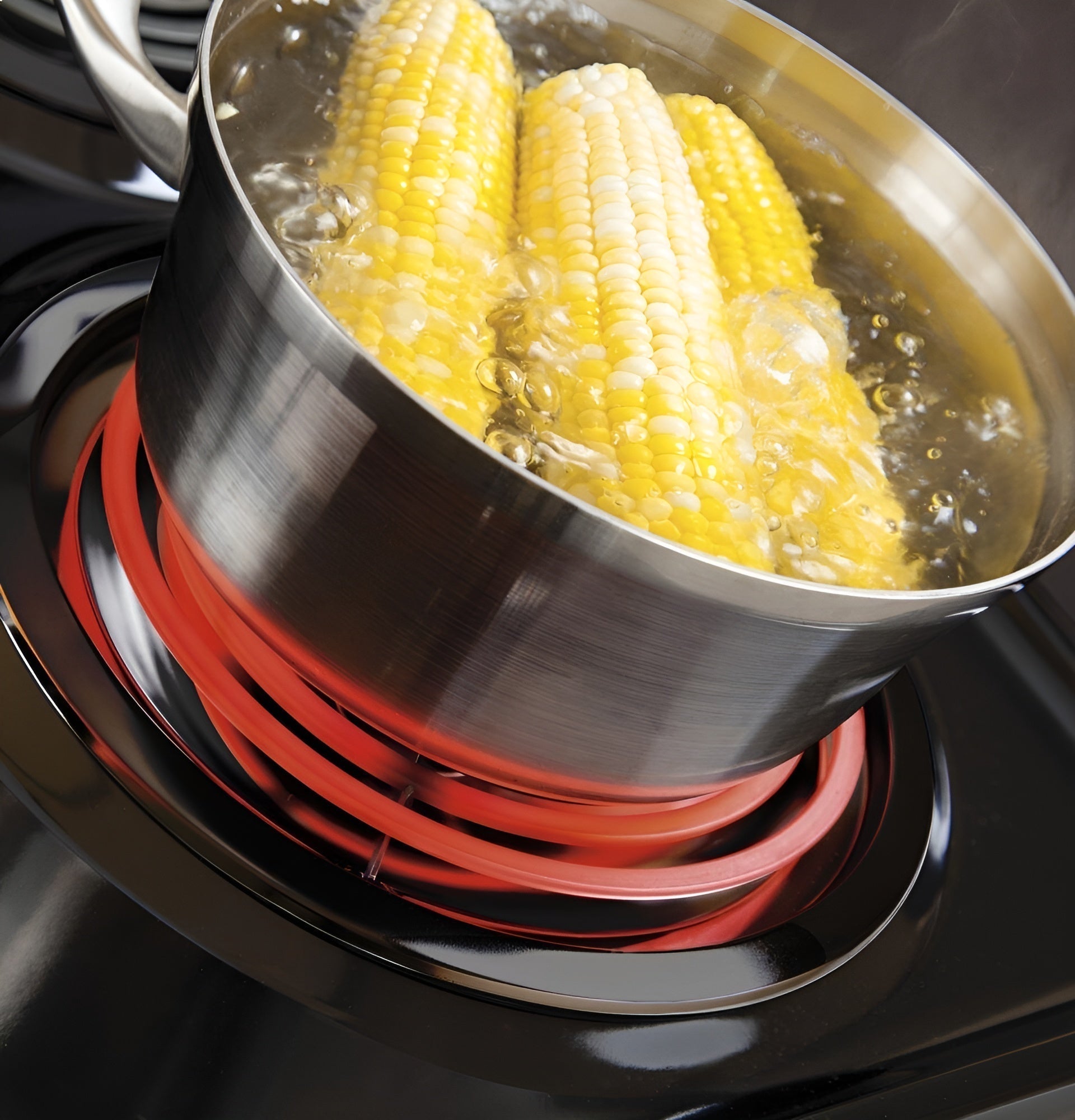 A: It includes four coil burners that provide even heating and easy replacement when needed.