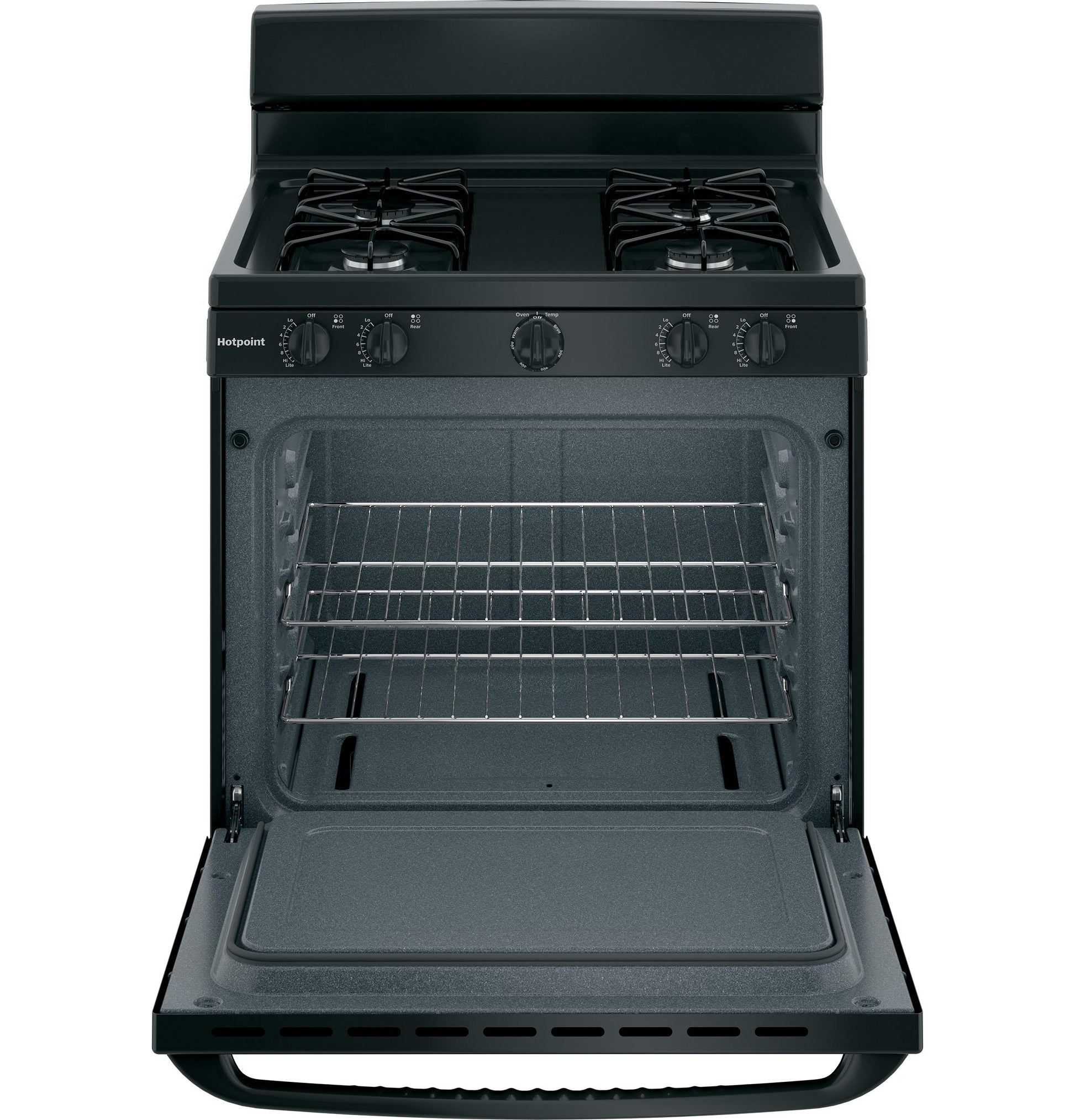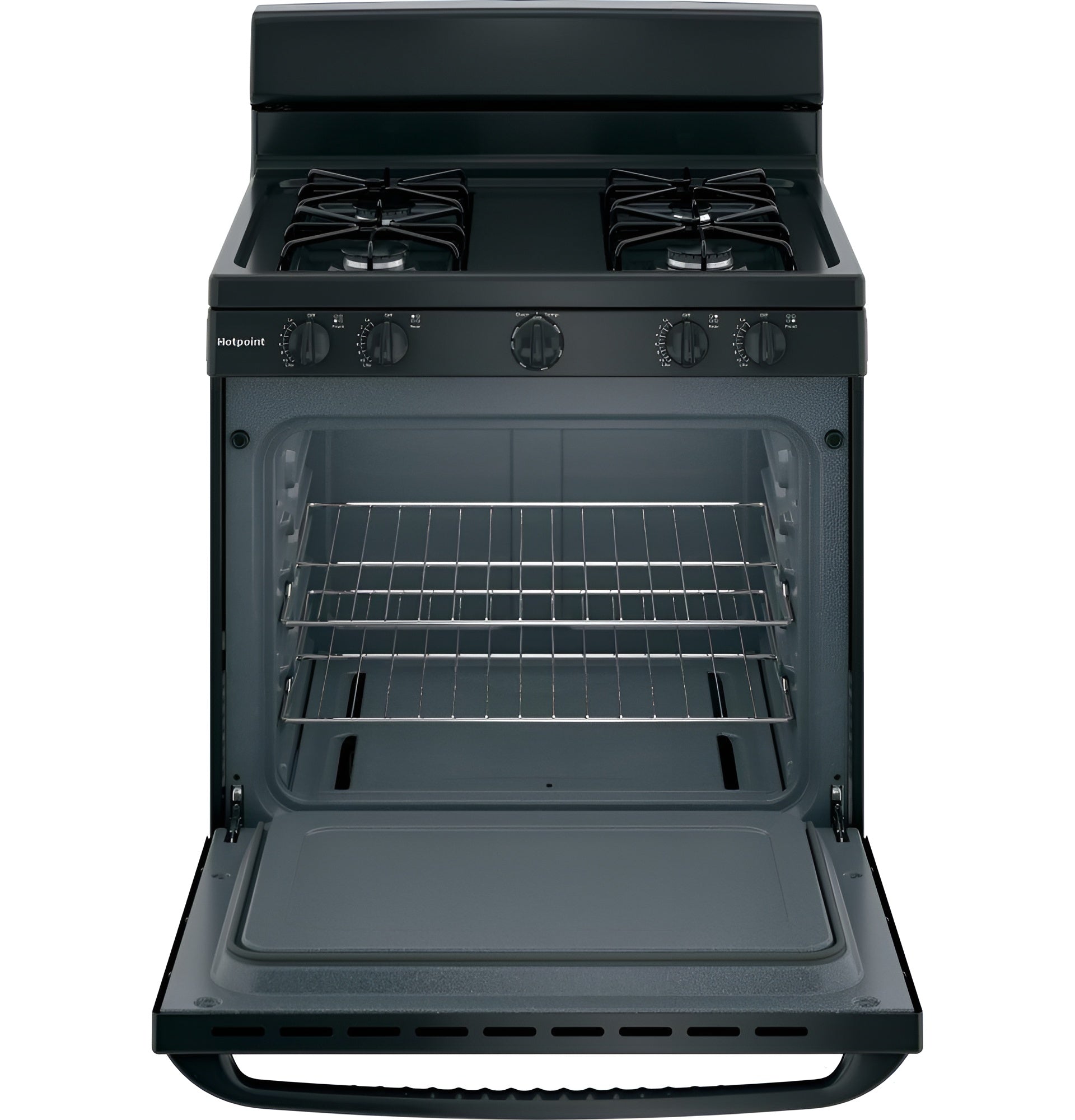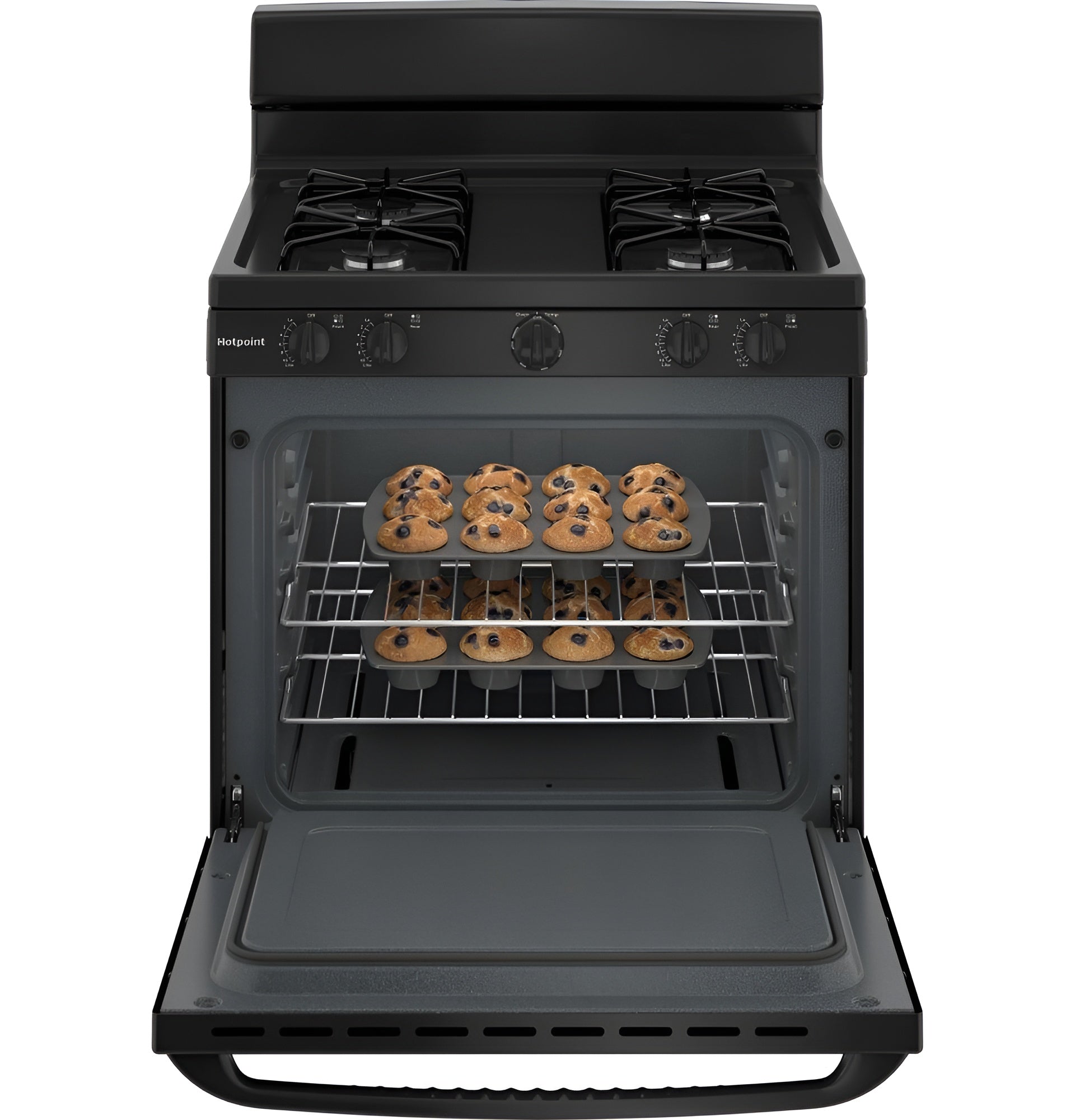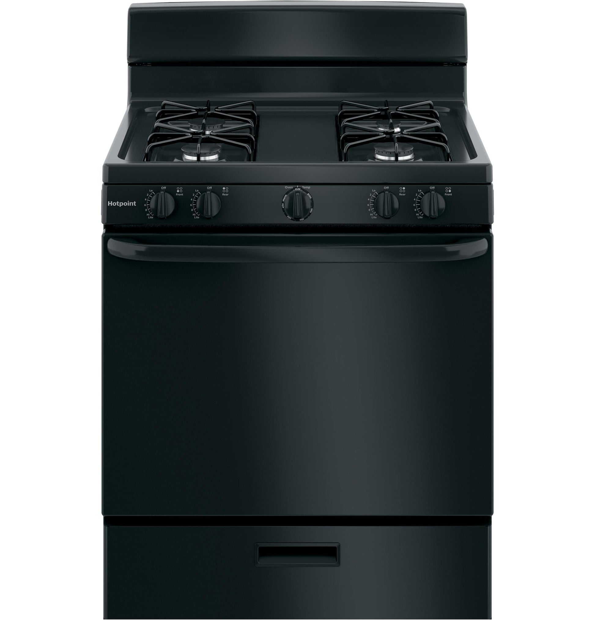 A: The HOTPOINT RGBS300DMBB is a 30" free-standing gas range with four sealed burners, a spacious oven, and a durable black finish. It offers reliable gas cooking performance with easy-to-use controls and a sleek design, perfect for any kitchen.