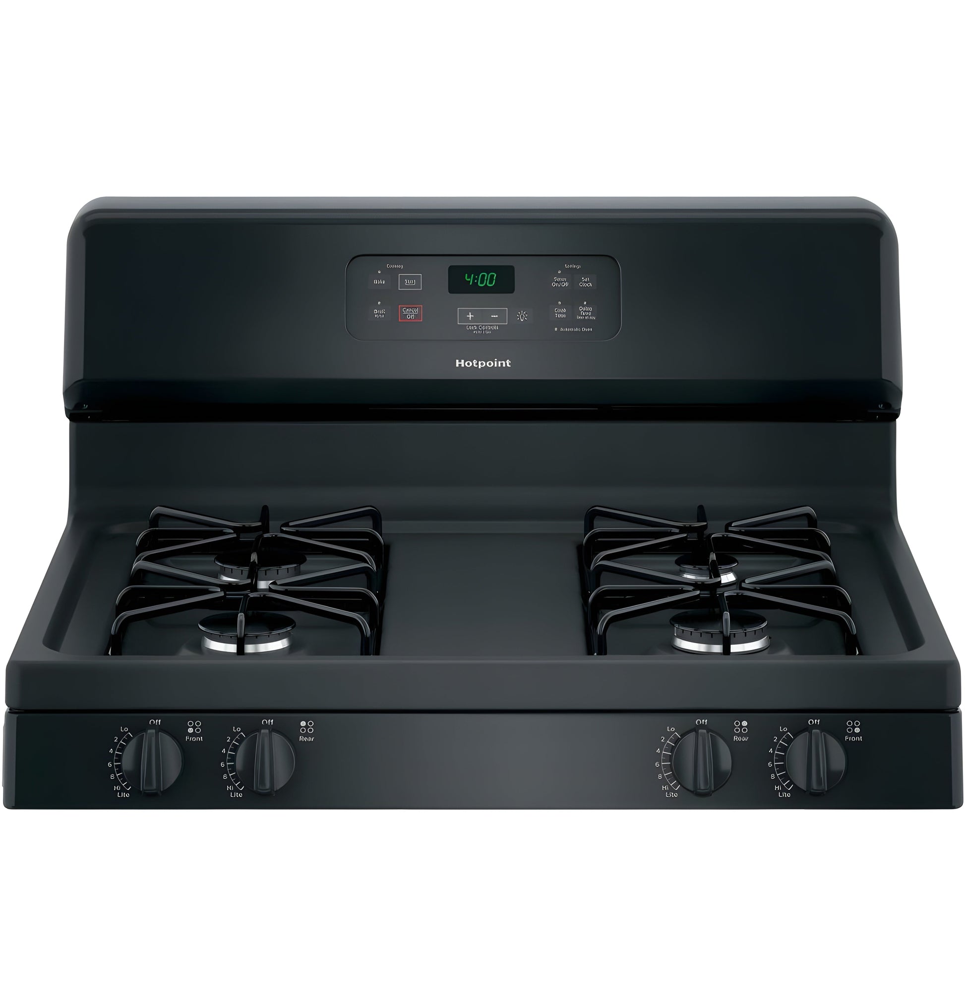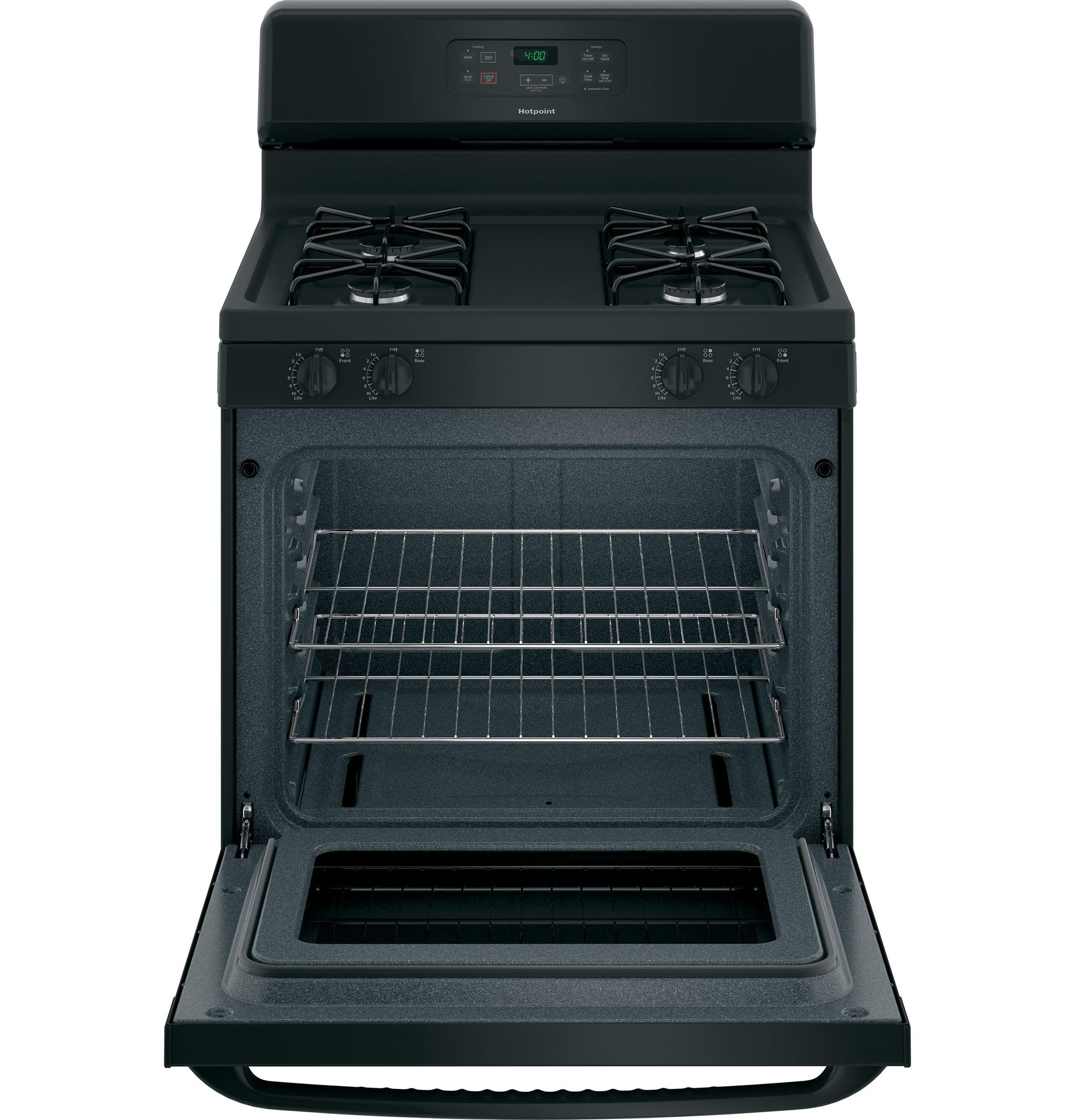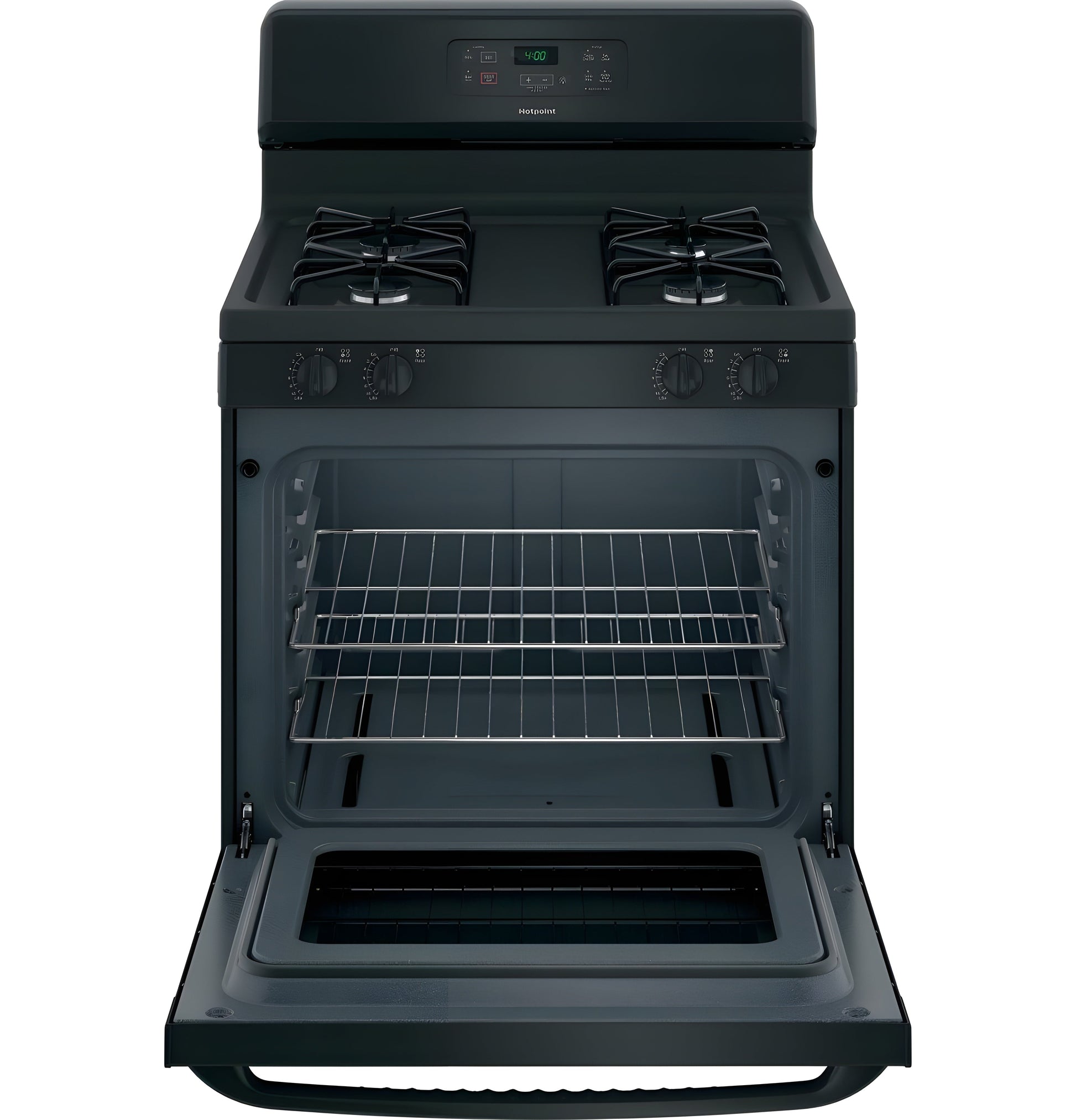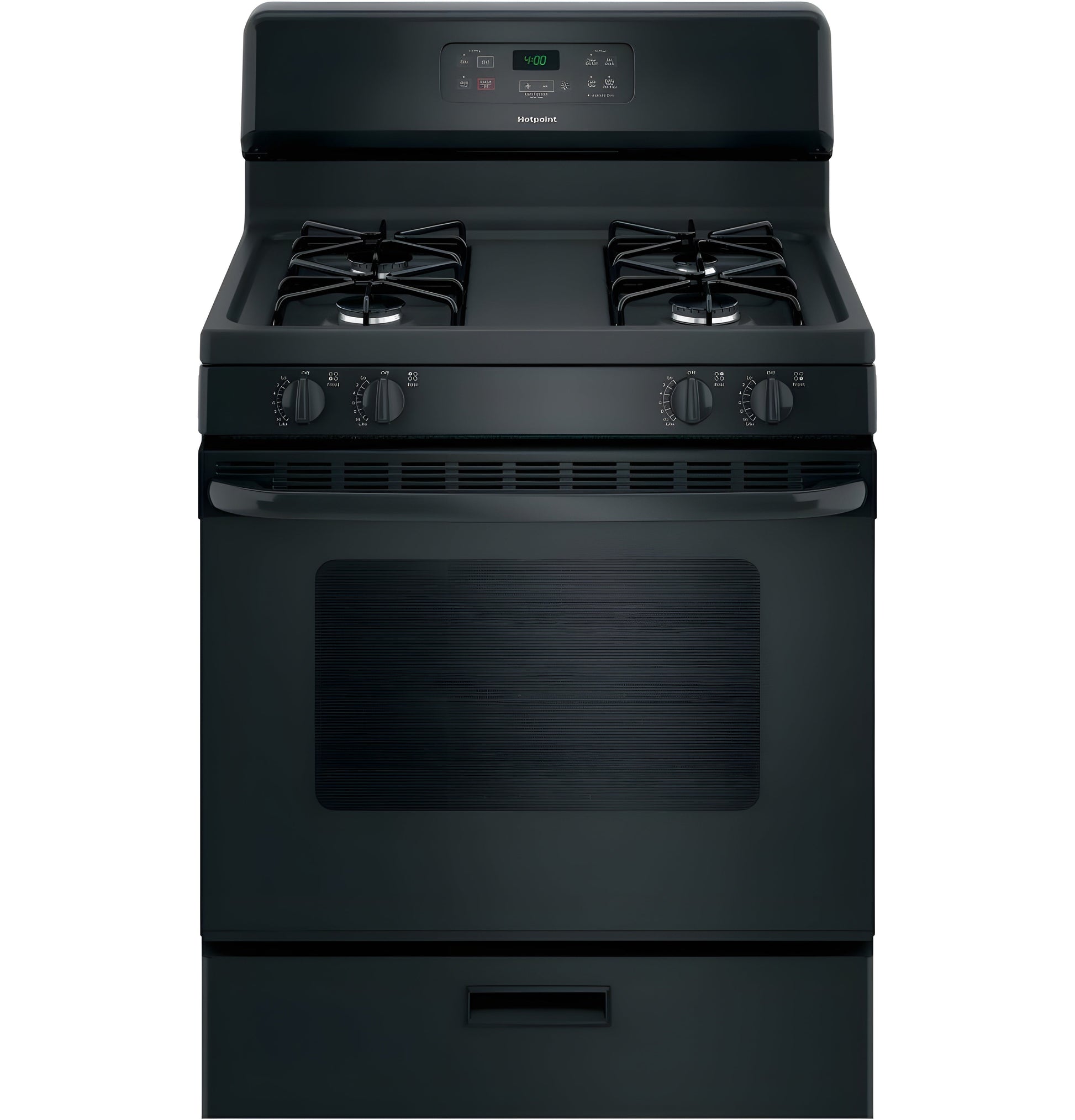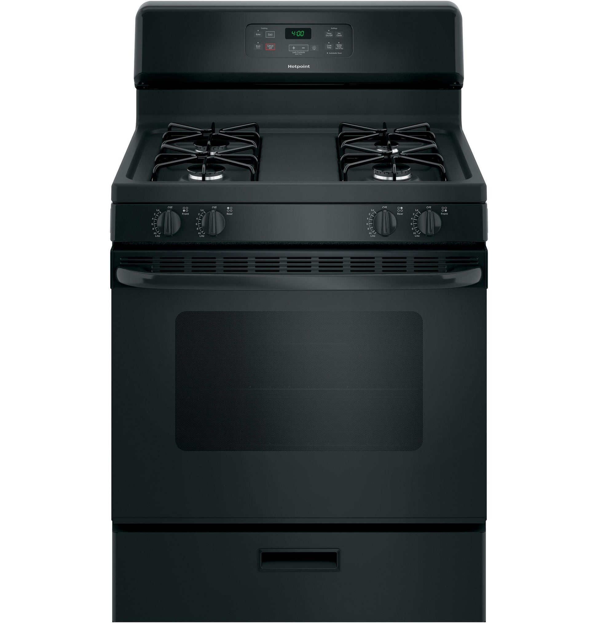 A: The HOTPOINT RGBS400DMBB is a 30" free-standing gas range featuring a standard clean oven, four sealed burners, and front-mounted controls for easy operation. It comes in a sleek black finish, offering a reliable and stylish cooking solution.