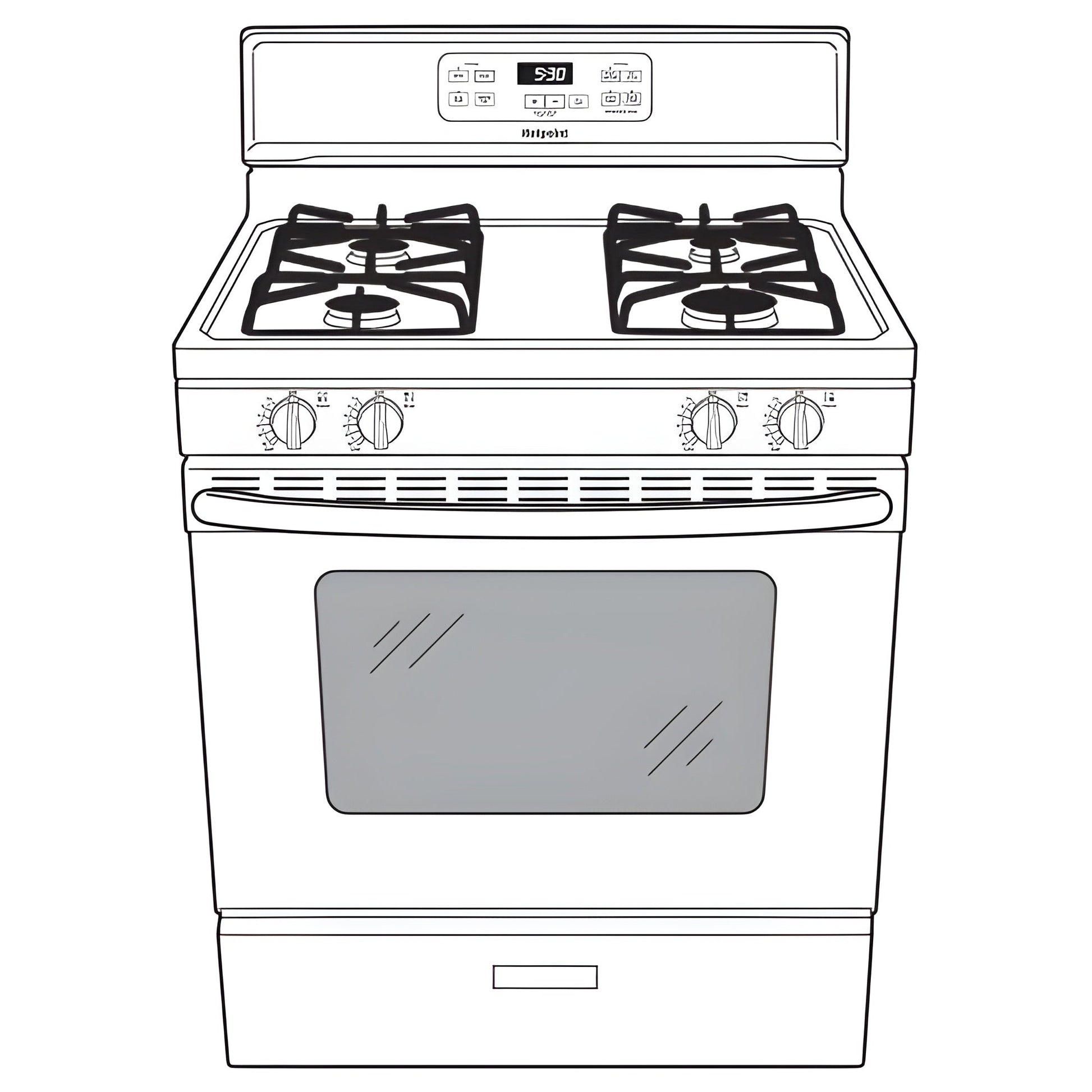 (BR)(B)Standard clean oven(/B)(P)Smooth surface and rounded corners make clean-up quick and easy(/P)(BR)(B)4.8 cu. ft. oven capacity(/B)(P)Enough room to cook an entire meal at once(/P)(BR)(B)Sealed cooktop burners(/B)(P)Contains spills and make cleaning quick and easy(/P)(BR)(B)Porcelain upswept cooktop(/B)(P)Raised edges contain spills, while the surface is easy to wipe clean(/P)(BR)(B)Heavy steel grates(/B)(P)High-grade steel grates offer dependable, long-lasting performance(/P)(BR)(B)Two oven racks(/B)(P)Feature a durable construction to help accommodate any size or type of cookware(/P)(BR)(B)One-piece durable handle(/B)(P)Strong and long-lasting(/P)(BR)(B)Large window(/B)(P)Easily look inside to monitor food as it's cooking(/P)(BR)(B)Broiler drawer(/B)(P)Achieve perfectly browned results(/P)(BR)(B)Visor handle(/B)(P)Features a classic design and easy cleanability(/P)